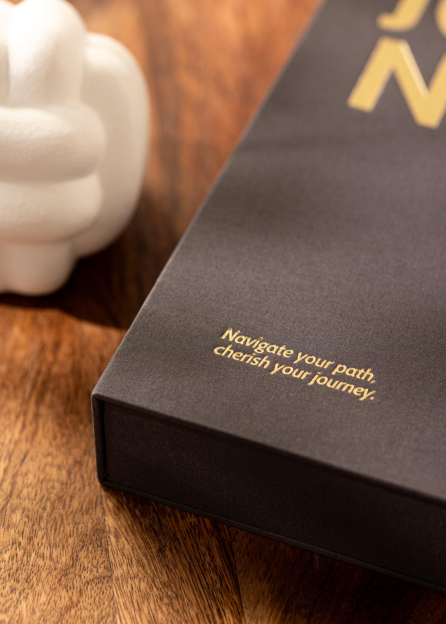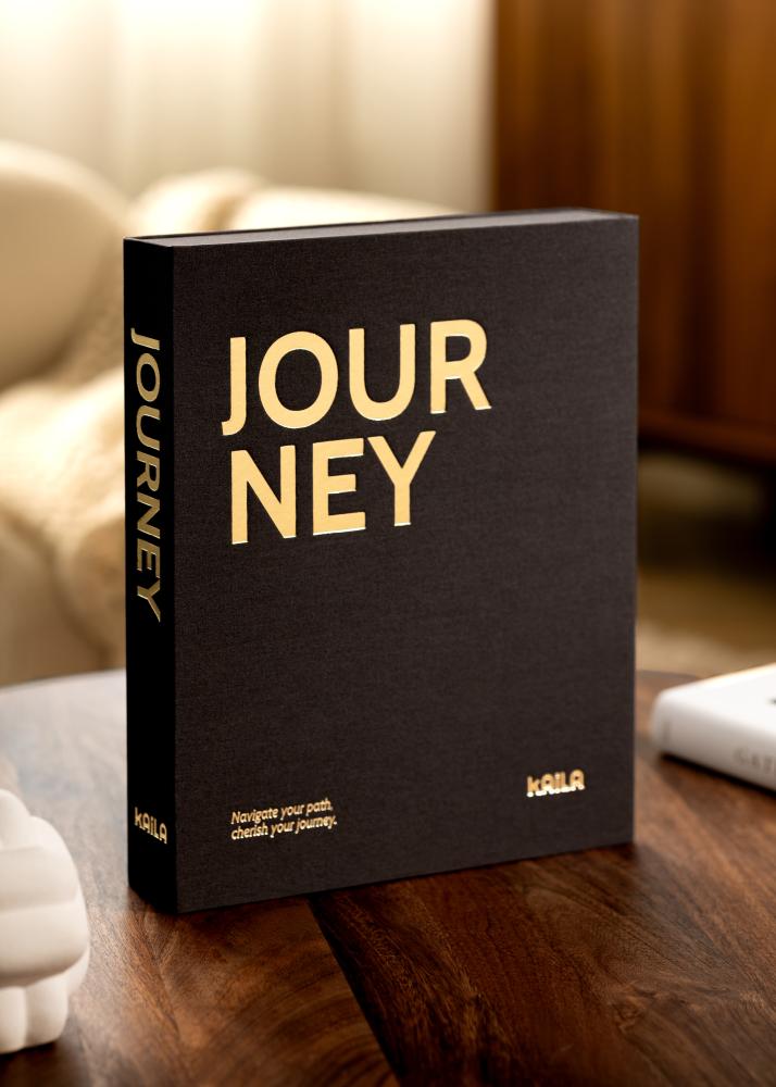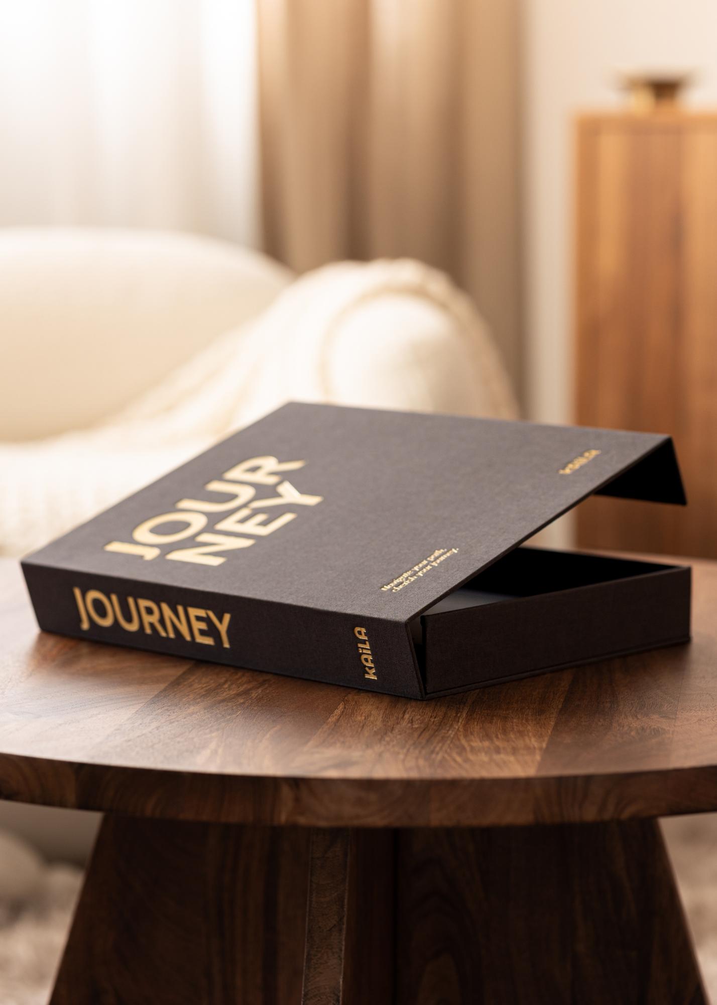 Odkrijte KAILA JOURNEY Črna - eleganten in stilski fotoalbum, ki je zasnovan kot čudovit dekorativni element v vašem domu. S svojimi bež platnicami in črnimi stranmi postane ta album popolna knjiga za klubsko mizo, ki jo lahko ponosno razstavite.