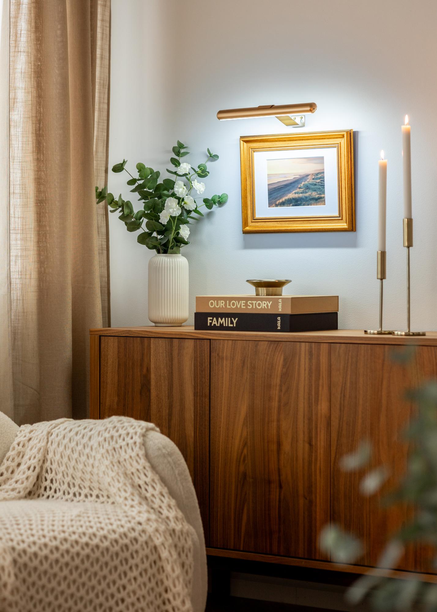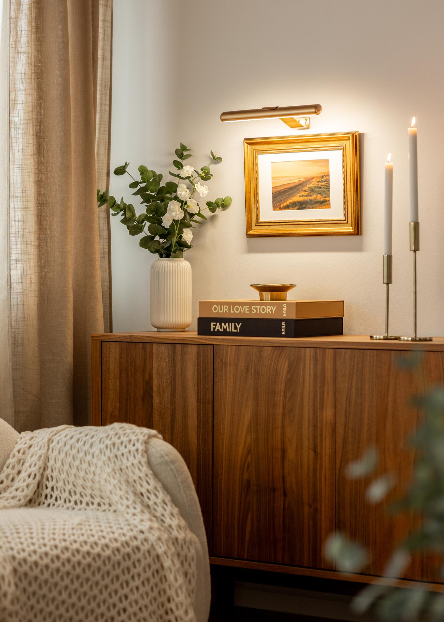 Ta baterijska slika osvetlitev v elegantni zlati barvi ponuja elegantno in prilagodljivo rešitev za osvetlitev vaših umetniških del brez potrebe po vidnih kablih. Posebnost baterijskih slikarskih luči je, da jih enostavno postavite tja, kjer jih potrebujete, ne da bi morali razmišljati o bližini električne vtičnice. Z dolžino 33 cm in globino 15 cm je idealna za osvetljevanje umetniških del širine do 60 cm.