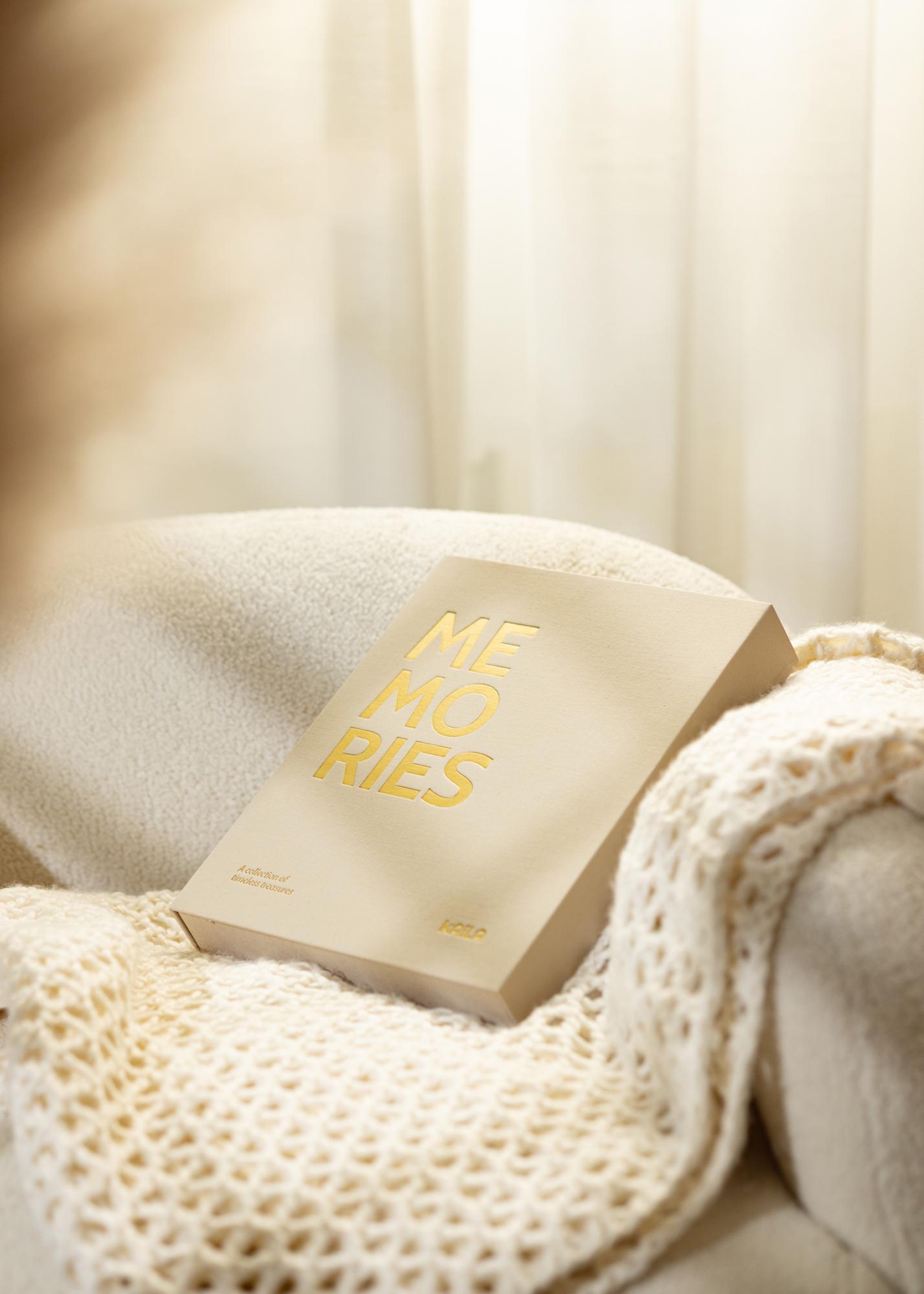 Album je stilno oblečen v kremno tkanino, na njegovem sprednjem delu in hrbtišču pa je zlati tisk z napisom "MEMORIES". Naslov albuma dopolnjuje podnaslov "A collection of timeless treasures", ki je natisnjen v spodnjem levem kotu.