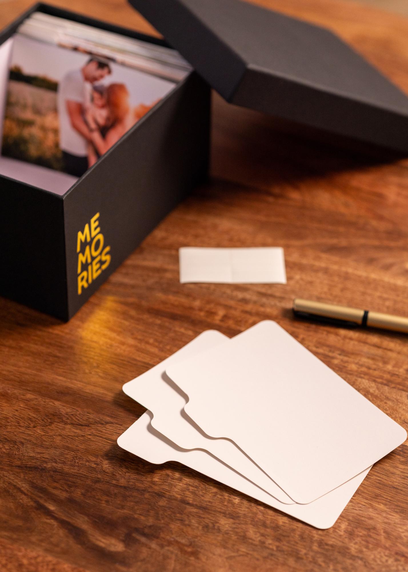 KAILA Memories Photo Box je eleganten in praktičen škatla za shranjevanje za do 700 slik velikosti 10x15 cm. Elegantna črna zasnova jo naredi brezčasen element v vašem domu, hkrati pa ščiti in organizira vaše fotografije. Popolna za tiste, ki želijo zbrati svoje spomine na preprost in eleganten način.