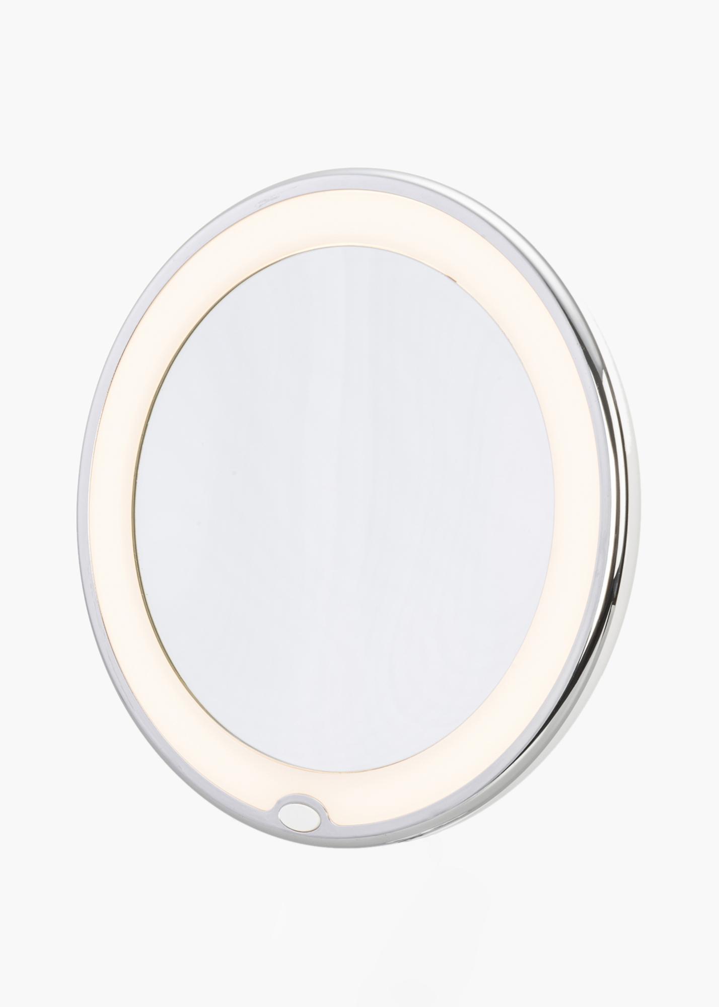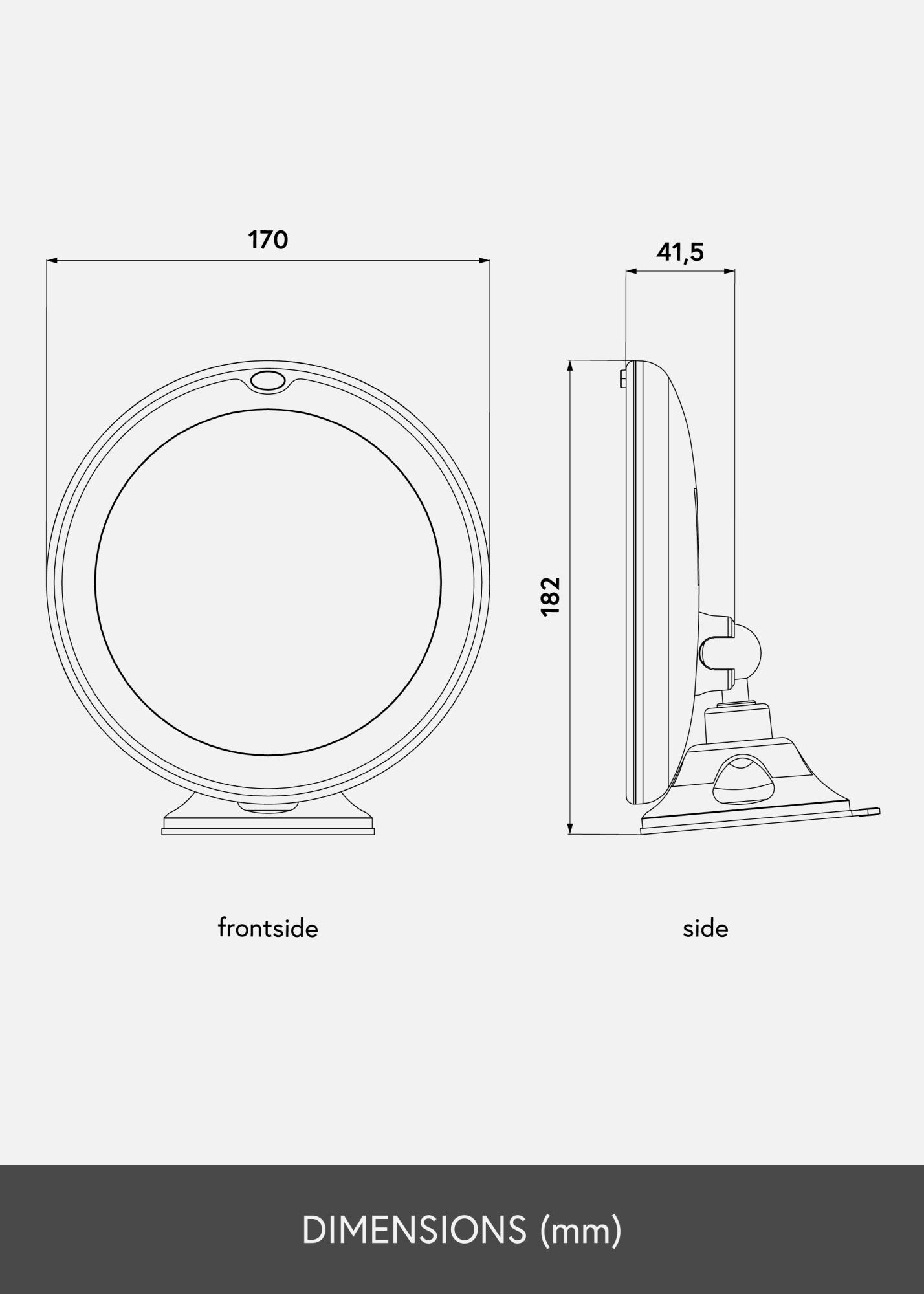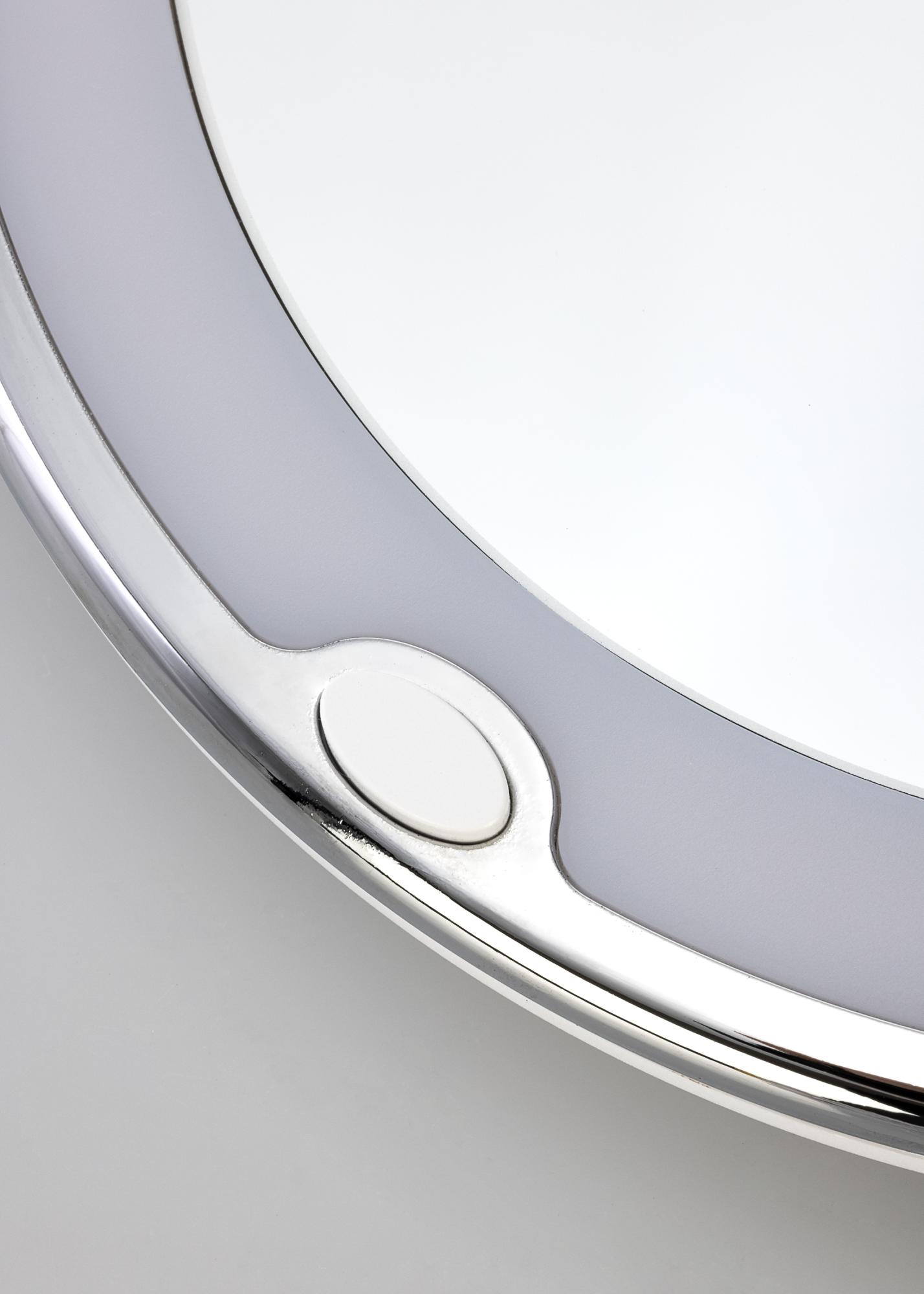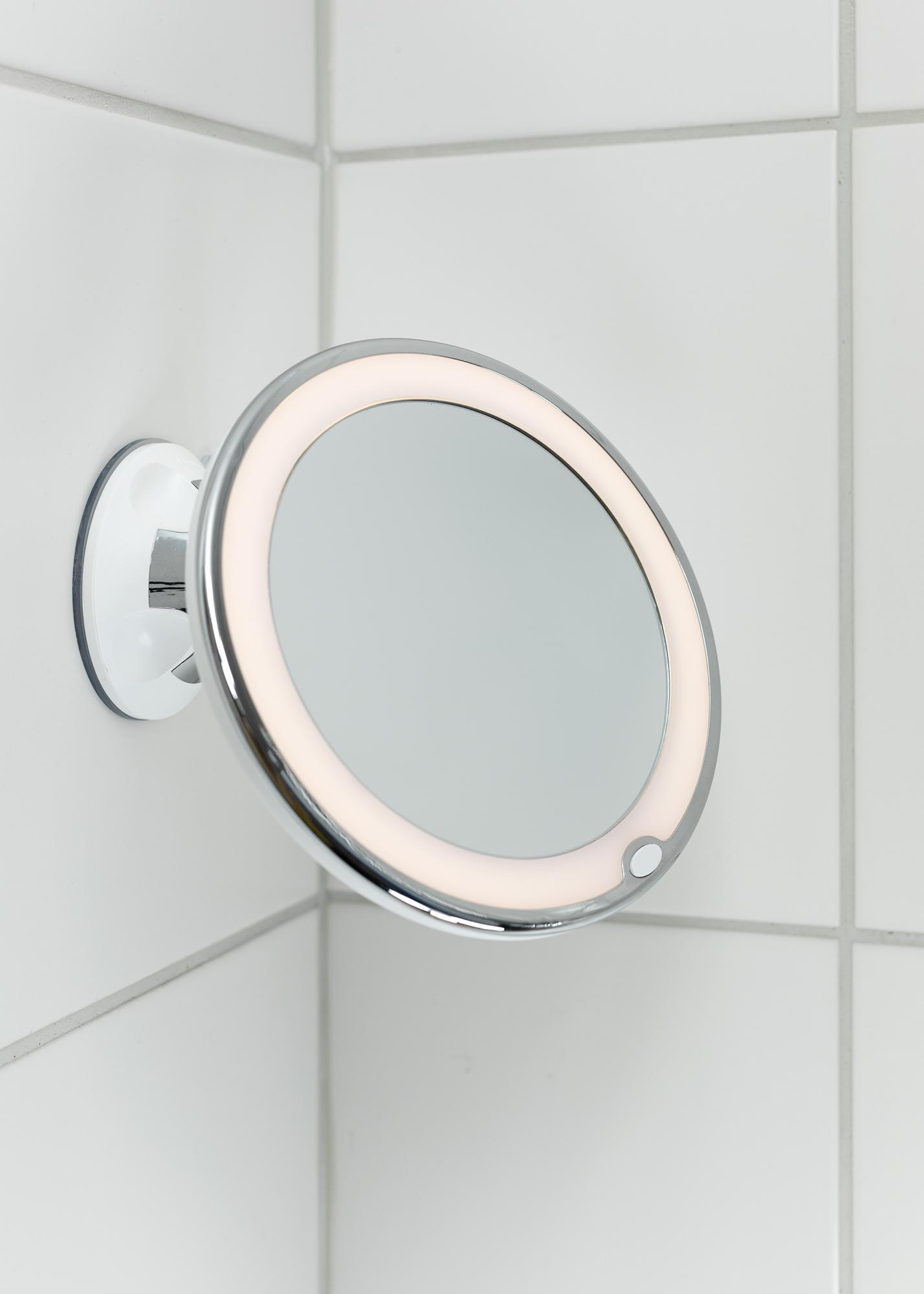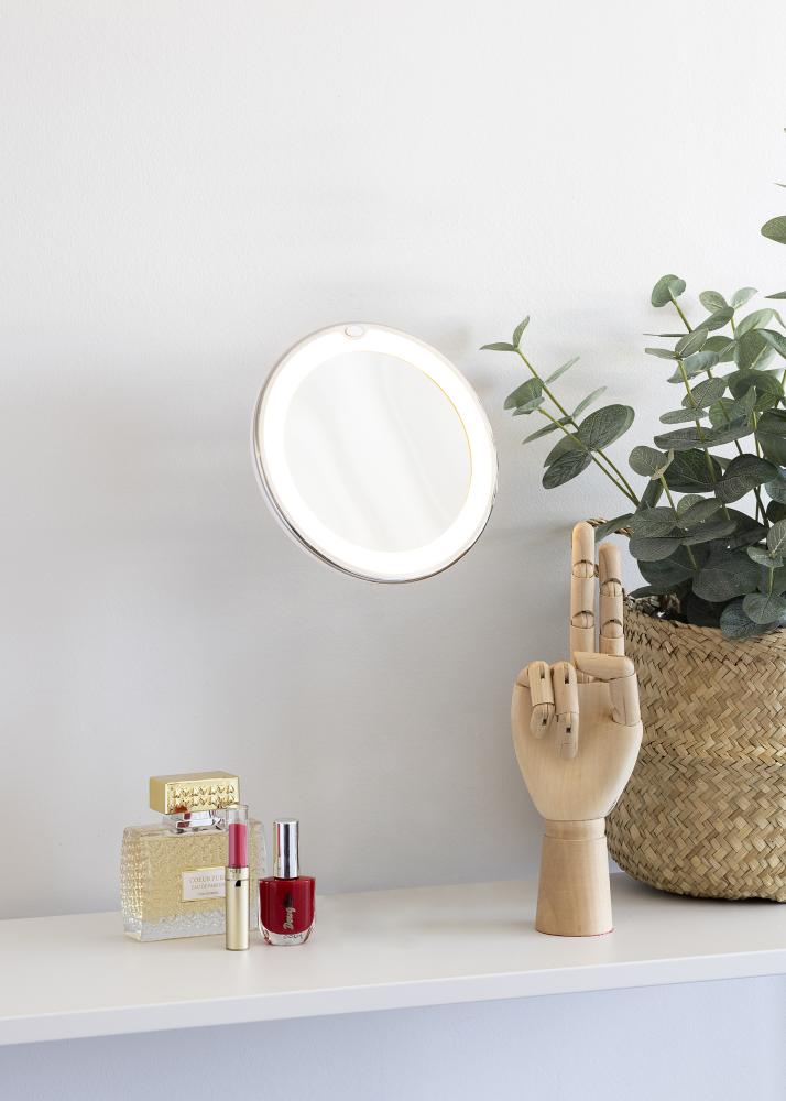 To je klasično ogledalo za kopalnico znamke KAILA v elegantnem dizajnu. Elegantno ogledalo ima vgrajeno LED osvetljavo, ki uokvirja ogledalo. Ogledalo za kopalnico meri 17 cm v premeru in ima povečevalno steklo s 5-kratno povečavo. Z drugimi besedami, to ogledalo je odlično za ostro bližino vašega obraza! Ogledalo je dekorativno kot notranji element, vendar njegova elegantna oblika omogoča, da ga enostavno skrijete, ko ni v uporabi. Ogledalo se pritrdi z priloženo prisesko na steno, ploščice ali mizo. Priseska je zaklepna in omogoča stabilno pritrditev ogledala. Dostavljeno nesestavljeno.