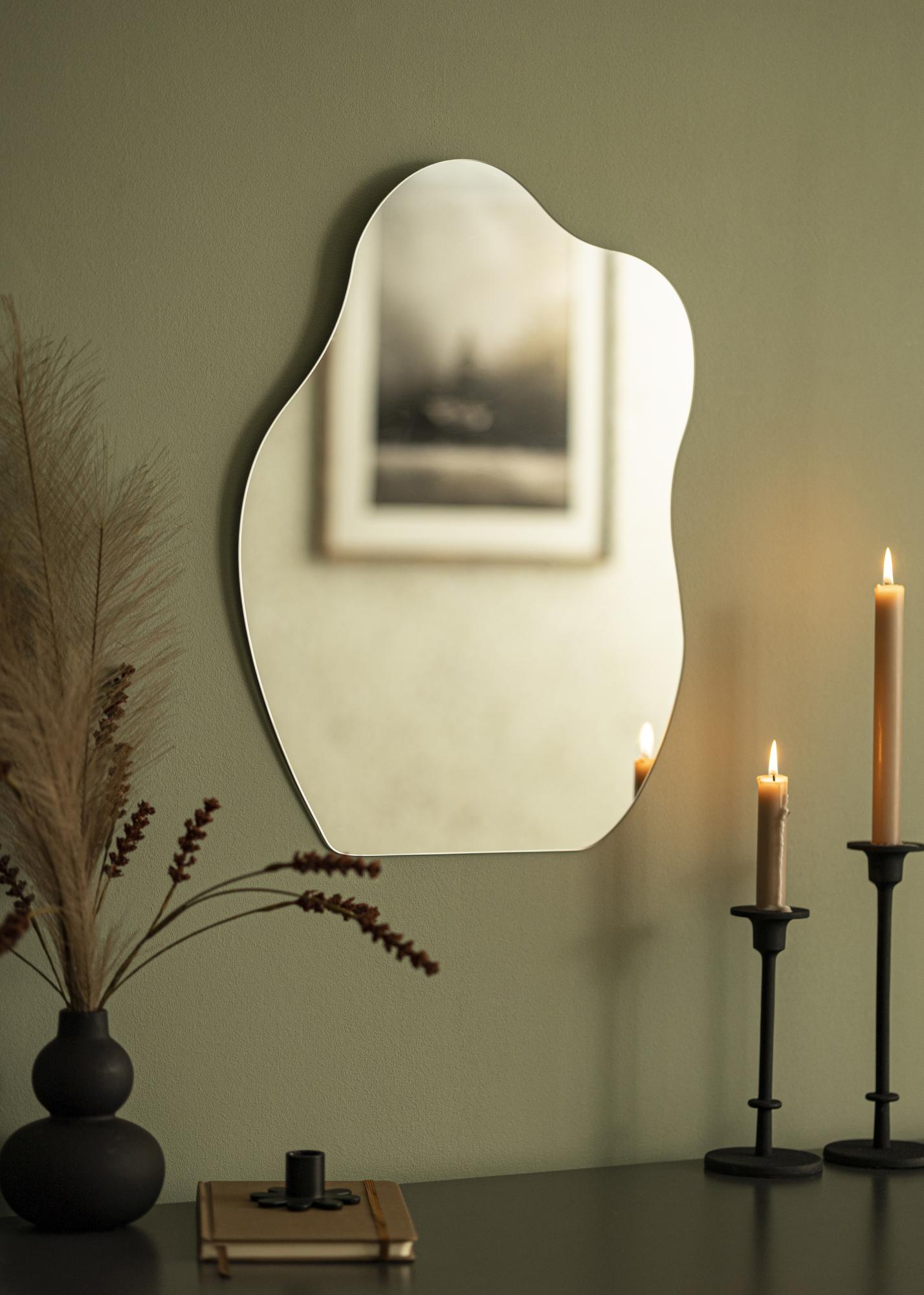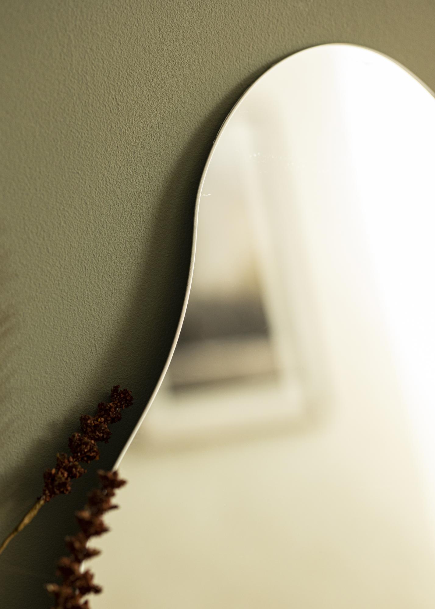 To stensko ogledalo ponuja eleganco in igrivost z valovito obliko, ki daje ogledalu njegov edinstven videz. Spodnji rob je raven, zato je ogledalo primerno za postavitev na pohištvo naslonjeno na steno. Seveda lahko ogledalo tudi pritrdite na steno!