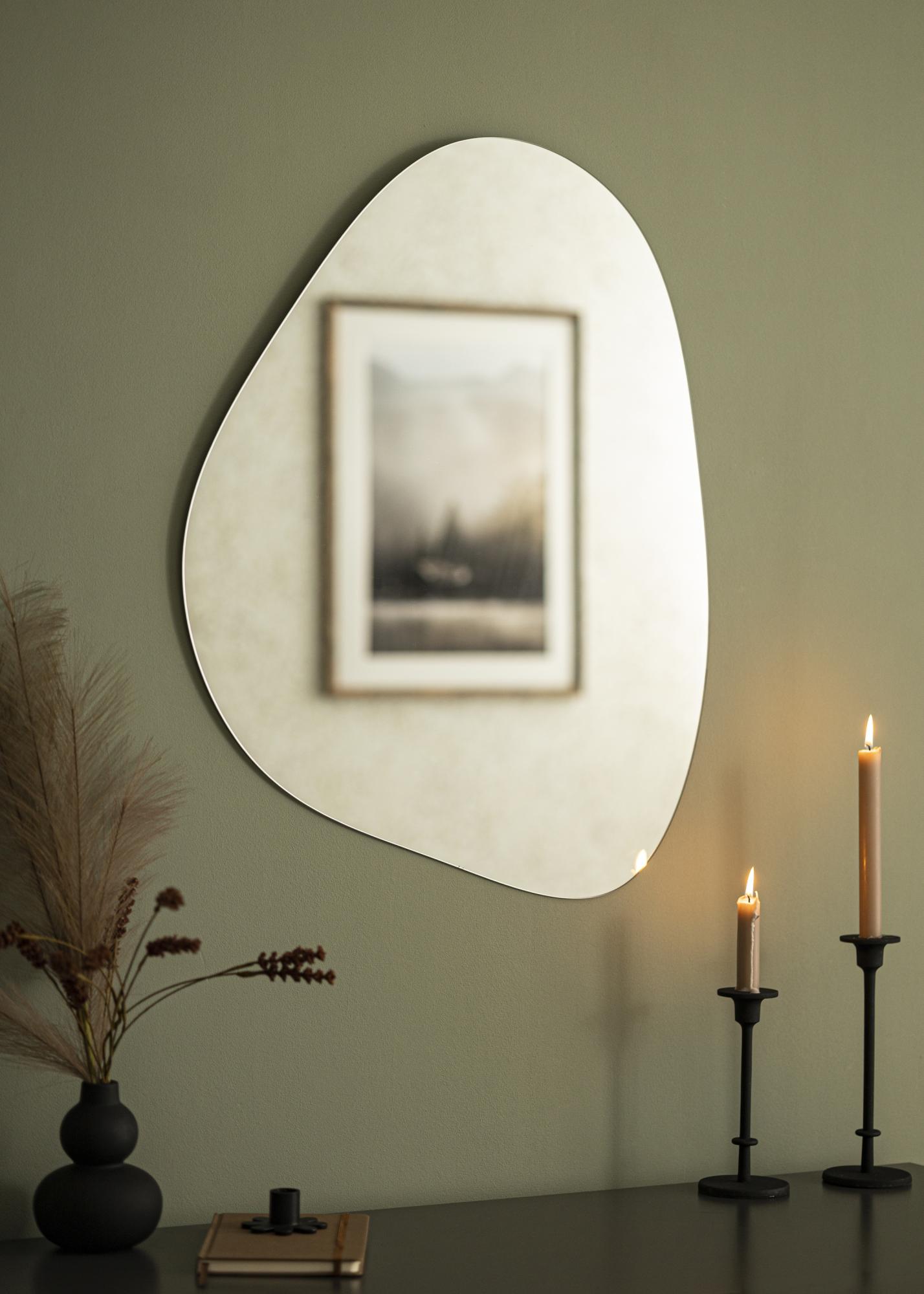 Kolikor okrogle in pravokotne ogledala so v svojem sijaju – če pa želite imeti ogledalo, ki resnično pritegne pozornost, se odločite za asimetrično različico. To stensko ogledalo ima unikatno obliko in elegantno zasnovo brez okvirja. Tanka ogledalna steklovina z debelino le 4 mm še bolj poudarja eleganten videz.