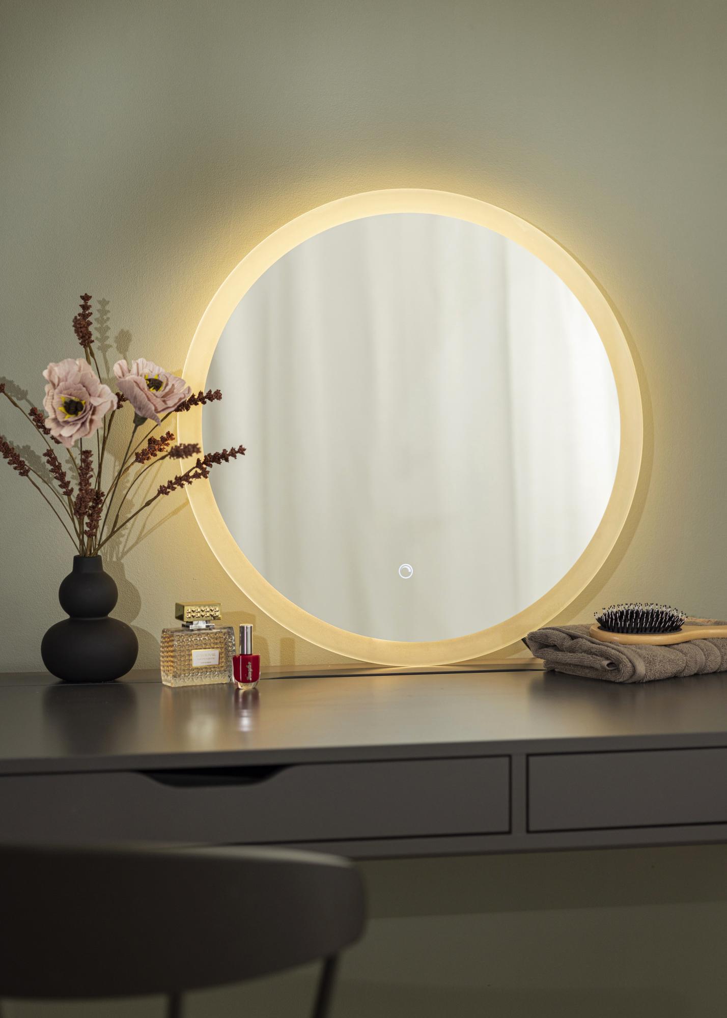 Zrcalo z integrirano osvetlitvijo bo vašo jutranjo rutino zelo poenostavilo! Ta različica ima klasično okroglo obliko in prijetno blago svetlobo pri 3000K. Eleganten stenski zrcalo je odličen za kopalnico, zahvaljujoč njegovi majhni velikosti, ki meri 60 cm v premeru, pa ga lahko uporabite tudi v prostorih z omejenim prostorom.