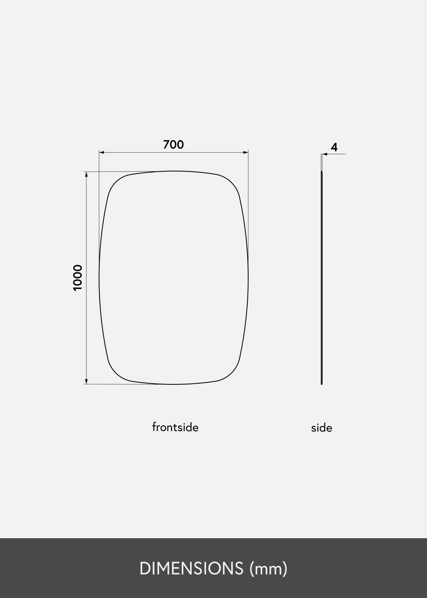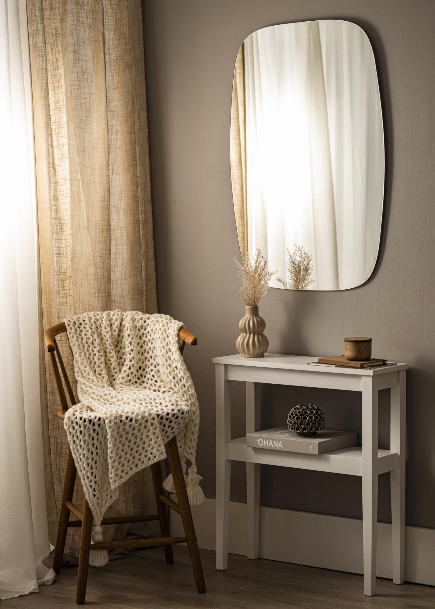 Lepa ogledalo iz KAILA, z zaobljenimi vogali in obokano stransko obliko, ki ustvarja izjemno eleganco. Ogledalo ima tanko brezbarvno ogledalno steklo in ni opremljeno z nobenim okvirjem, kar še bolj poudarja prijetno minimalističen občutek. Elegantna podoba omogoča, da stenska ogledala popolnoma ustrezajo vsakemu domu. Zahvaljujoč praktičnemu nosilcu za steno lahko ogledalo pritrdite na steno. Ogledalo meri 70x100 cm.