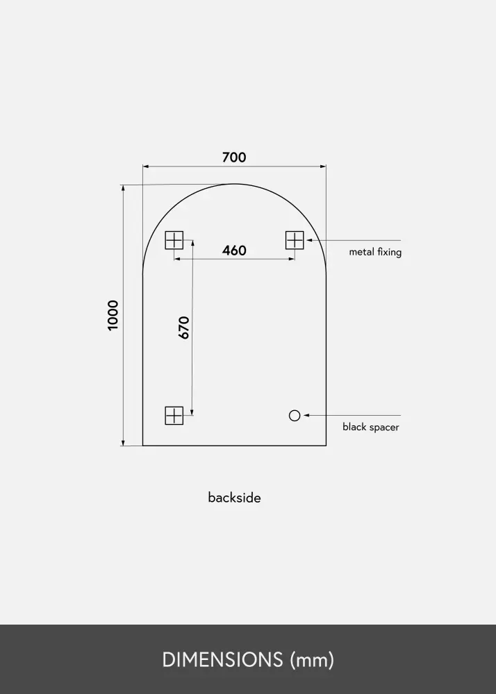 Tanko ogledalo iz KAILA z obliko loka, ki se odlično prilega tako v dnevno sobo kot spalnico. Ogledalo ima tanko brezbarvno steklo in ni opremljeno z nobenim okvirjem, kar poudarja čudovito minimalističen občutek. Eleganten videz naredi stensko ogledalo popolno za vsak dom. Zahvaljujoč praktičnemu stenskemu nosilcu lahko ogledalo pritrdite na steno. Ogledalo meri 70x100 cm.