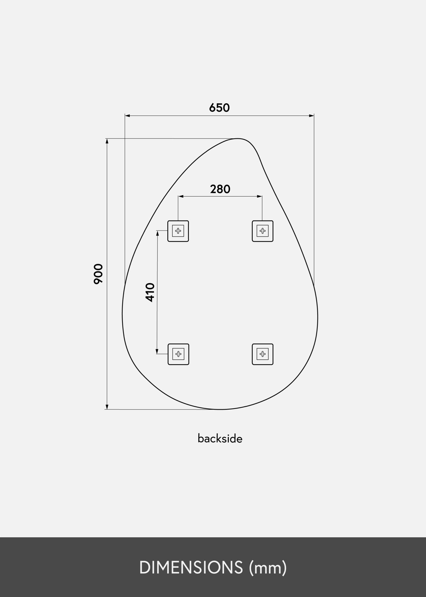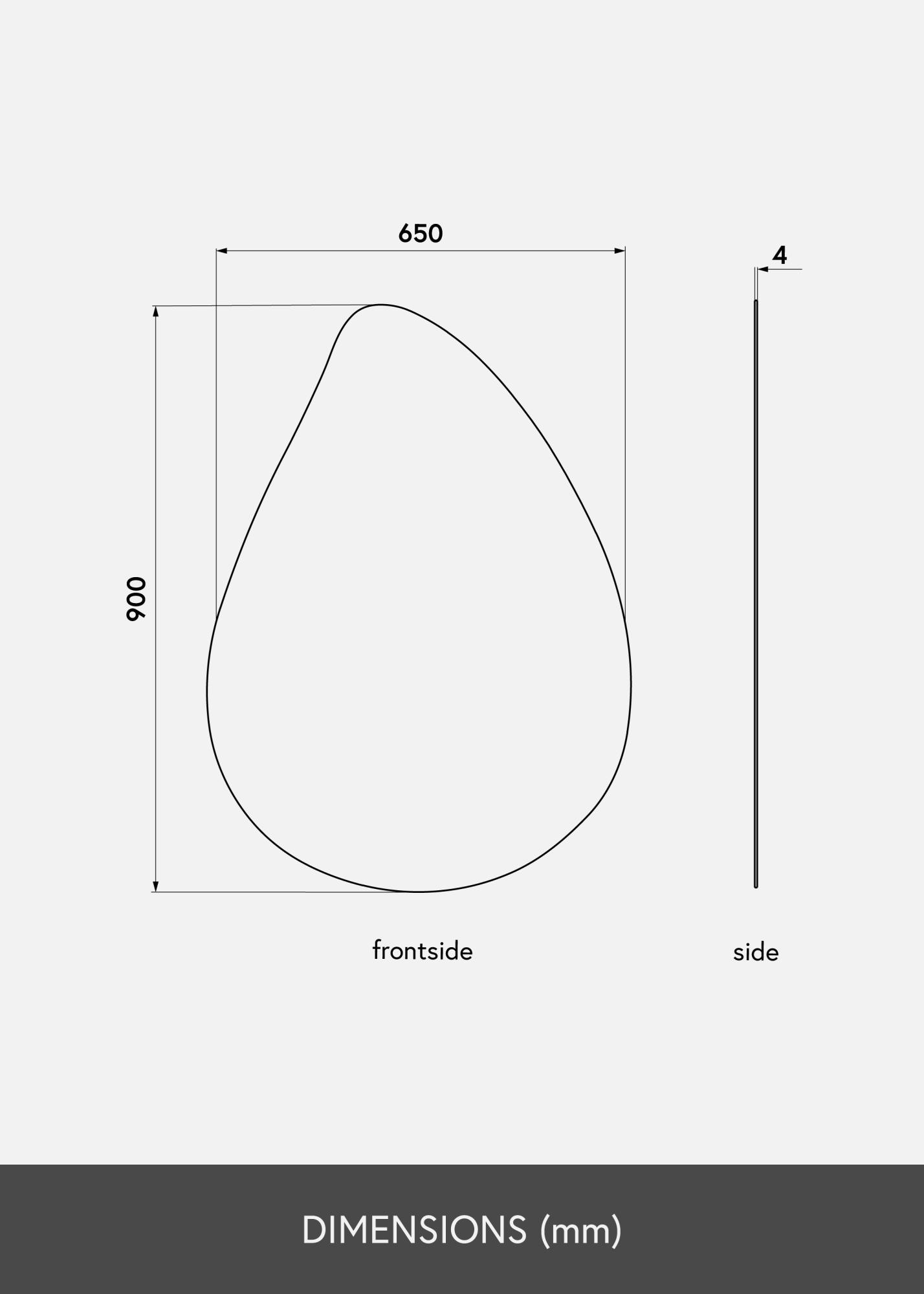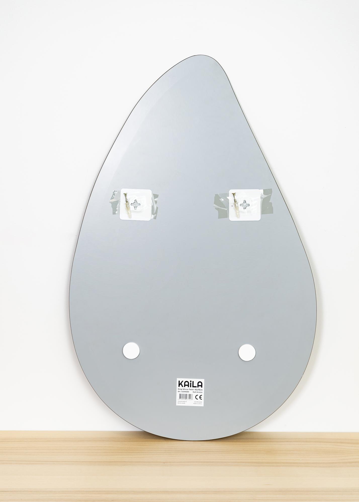 To kapljičasto ogledalo je na voljo v več velikostih, od katerih je ta izvedba velikosti 65x90 cm. Namestite ogledalo na steno v dnevni sobi, predsobi, spalnici - ali v katerem koli prostoru, kjer želite dodati funkcionalnost in elegantno švedsko oblikovanje.