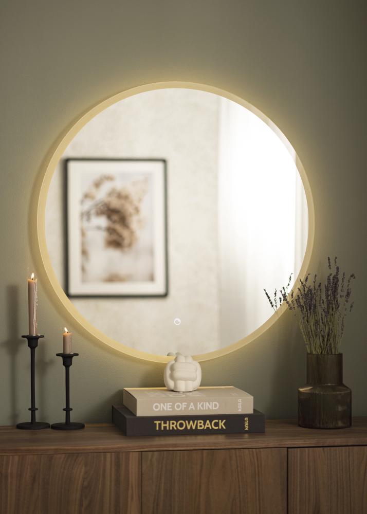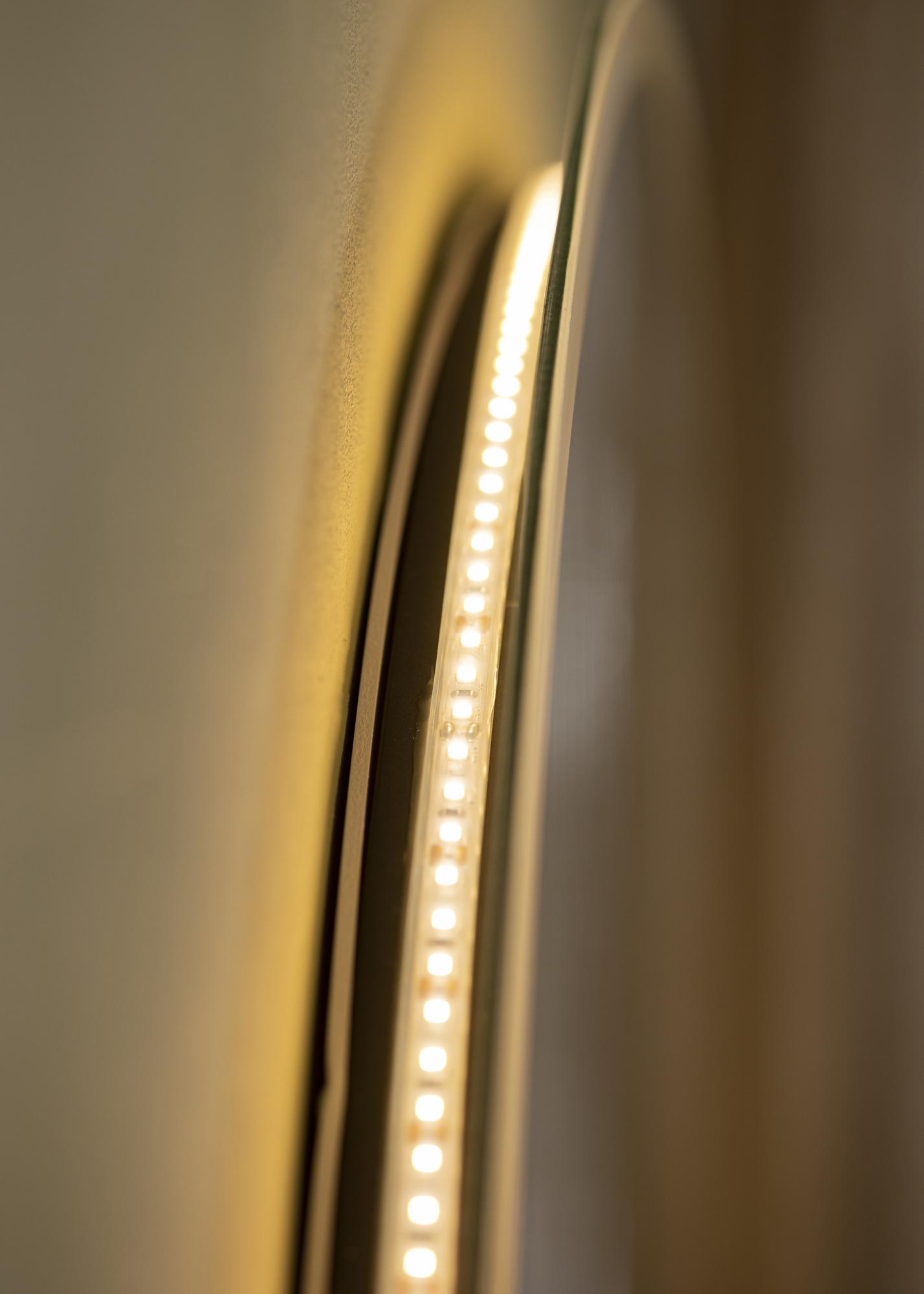 LED je energijsko varčen svetlobni vir, ki daje enakomerno in naravno svetlobo - kar pomeni, da je to ogledalo odlično kot kopalniško ogledalo in kot ogledalo za ličenje, ali zakaj ne kot ogledalo v predsobi! Elegantno ogledalo meri 80 cm v premeru in je debelo le 3 cm.