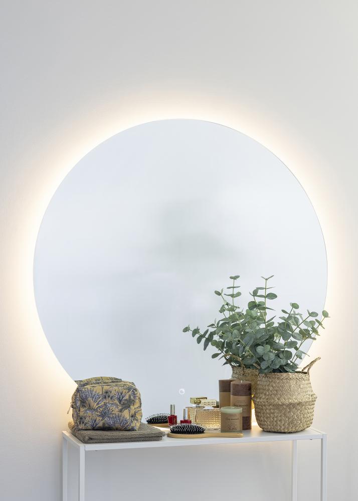 To je klasično kopalniško ogledalo okrogle oblike švedskega podjetja KAILA. Kopalniško ogledalo ima vgrajeno zatemnitveno LED osvetlitev okoli, ki jo osvetljuje od zadaj in omogoča prijetno toplo belo svetlobo naprej pri 3000K. Osvetlitev je zatemnitvena in enostavno lahko prilagodite jakost osvetlitve tako, da držite gumb nekaj sekund. Ko boste naslednjič vklopili osvetlitev, si bo ogledalo zapomnilo, kakšna je bila nastavljena jakost svetlobe. LED je energetsko varčen vir svetlobe, ki daje enakomerno in naravno svetlobo.