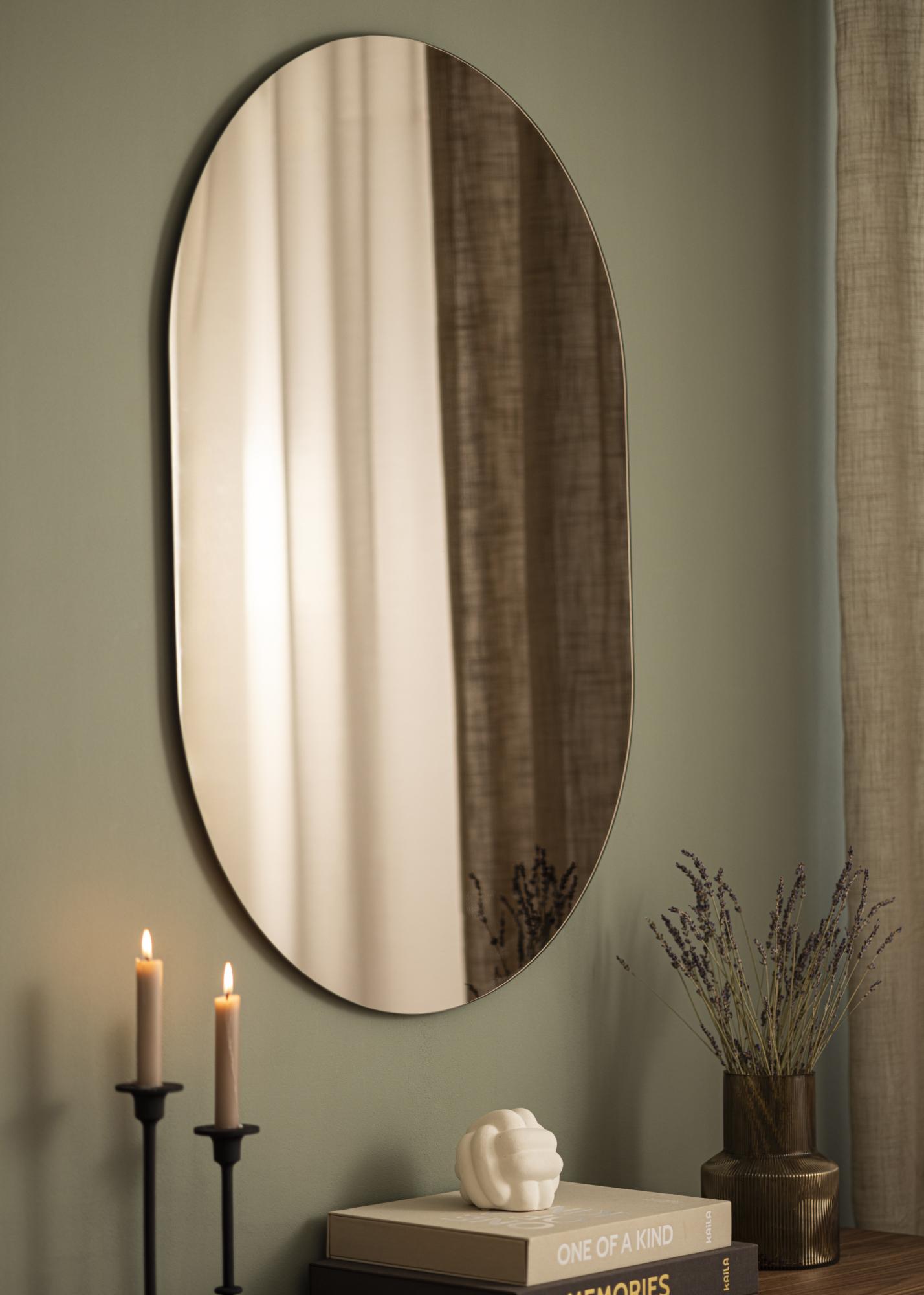 Ovalno ogledalo daje vašemu domu mehak in eleganten vtis. Prav to ovalno ogledalo ima ogledalno steklo v elegantnem odtenku temne brona. Ta izrazit in trendovski element je kombiniran z vitko obliko, saj je ogledalo zelo tanko in ni opremljeno z nobenim okvirjem. Rezultat je vpadljiva, moderna in elegantna dekorativna podrobnost, ki jo lahko postavite v katerokoli sobo, kjer želite dodati funkcionalnost in trendovski švedski dizajn!