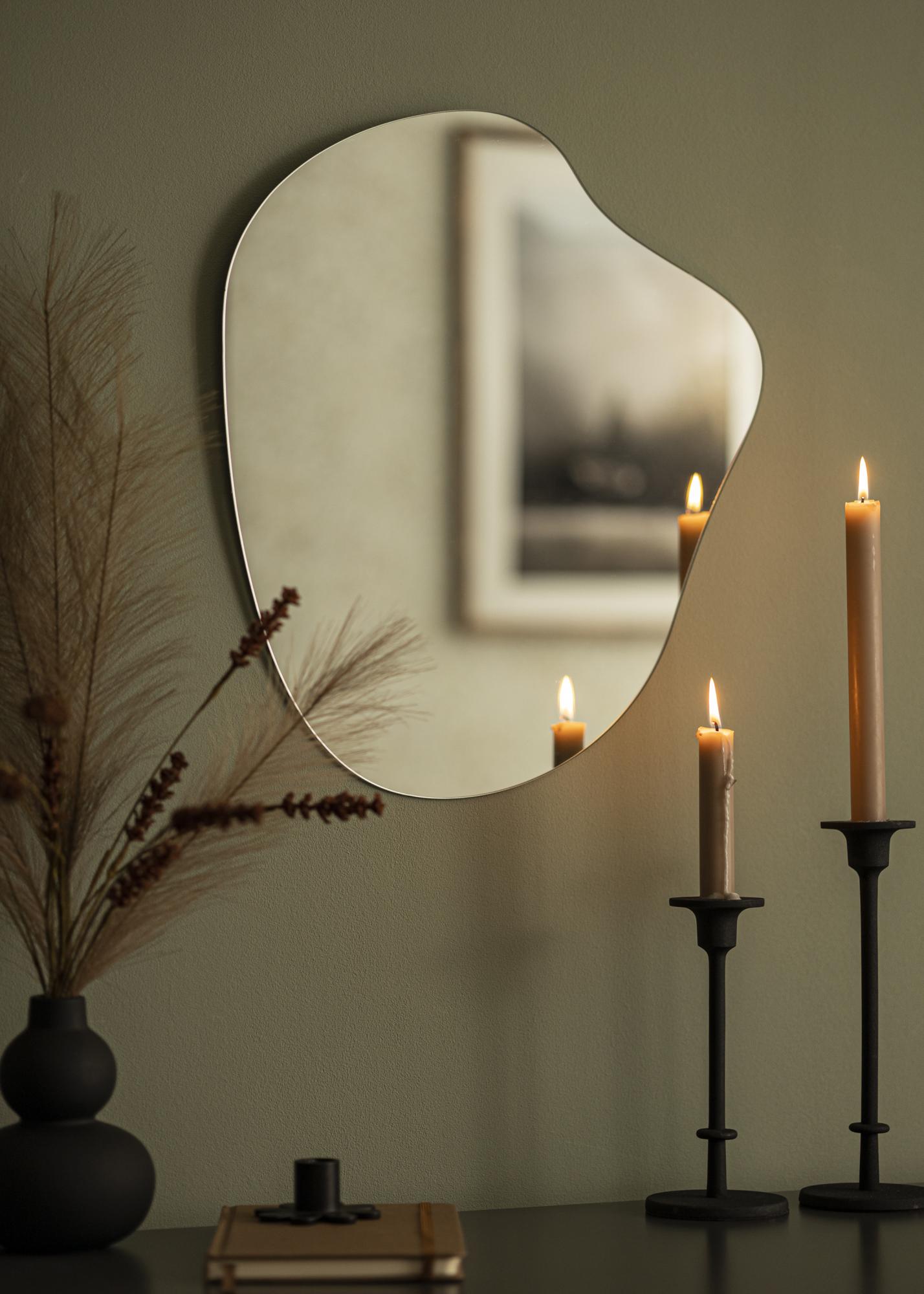 Pustite, da to trendovsko stensko ogledalo postane zanimiv notranji element, ki lepo odseva svetlobo iz oken in svetilk. Njegova edinstvena oblika in odsotnost okvirja dajeta ogledalu značilen videz, ki je tako modern kot minimalističen.