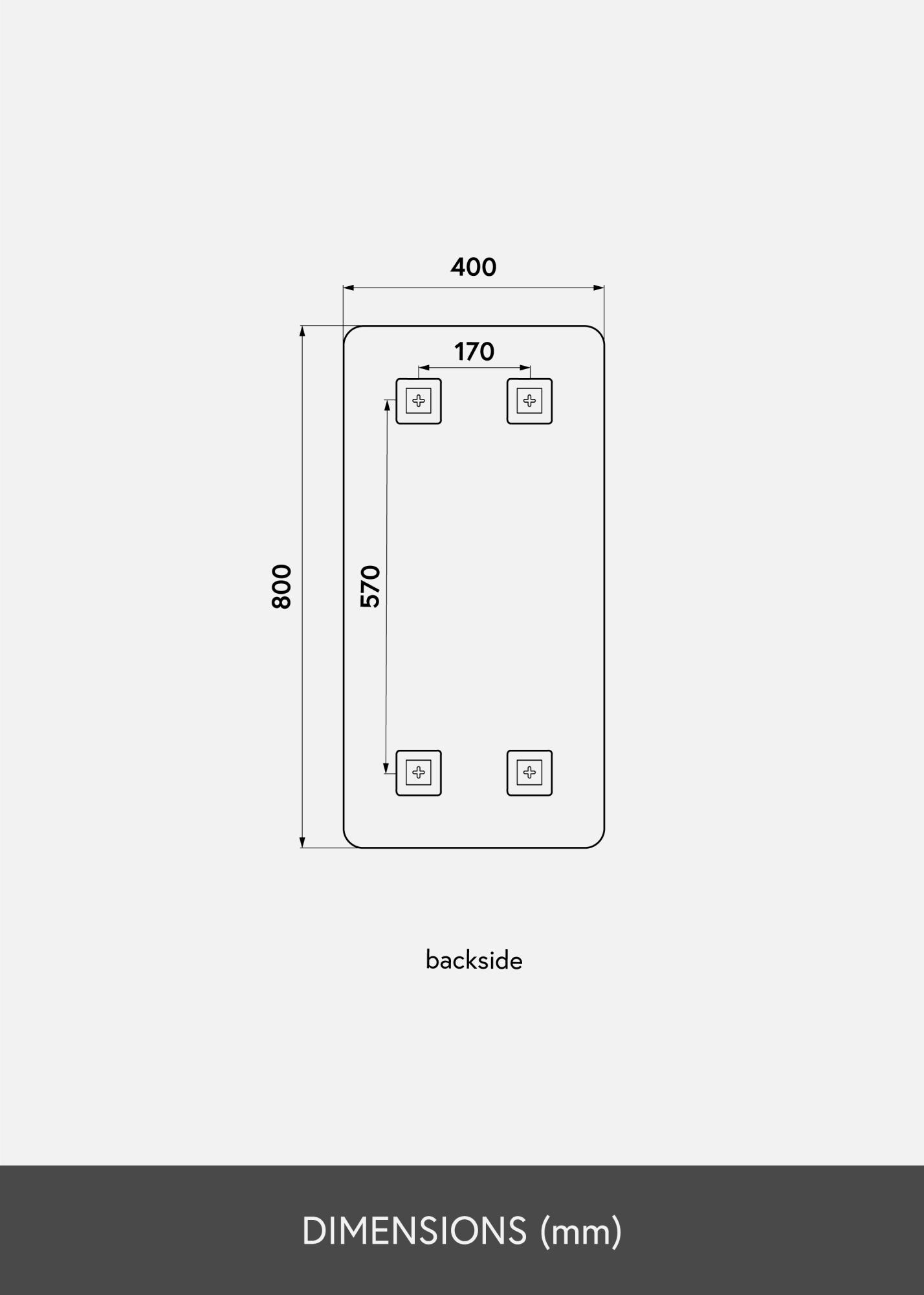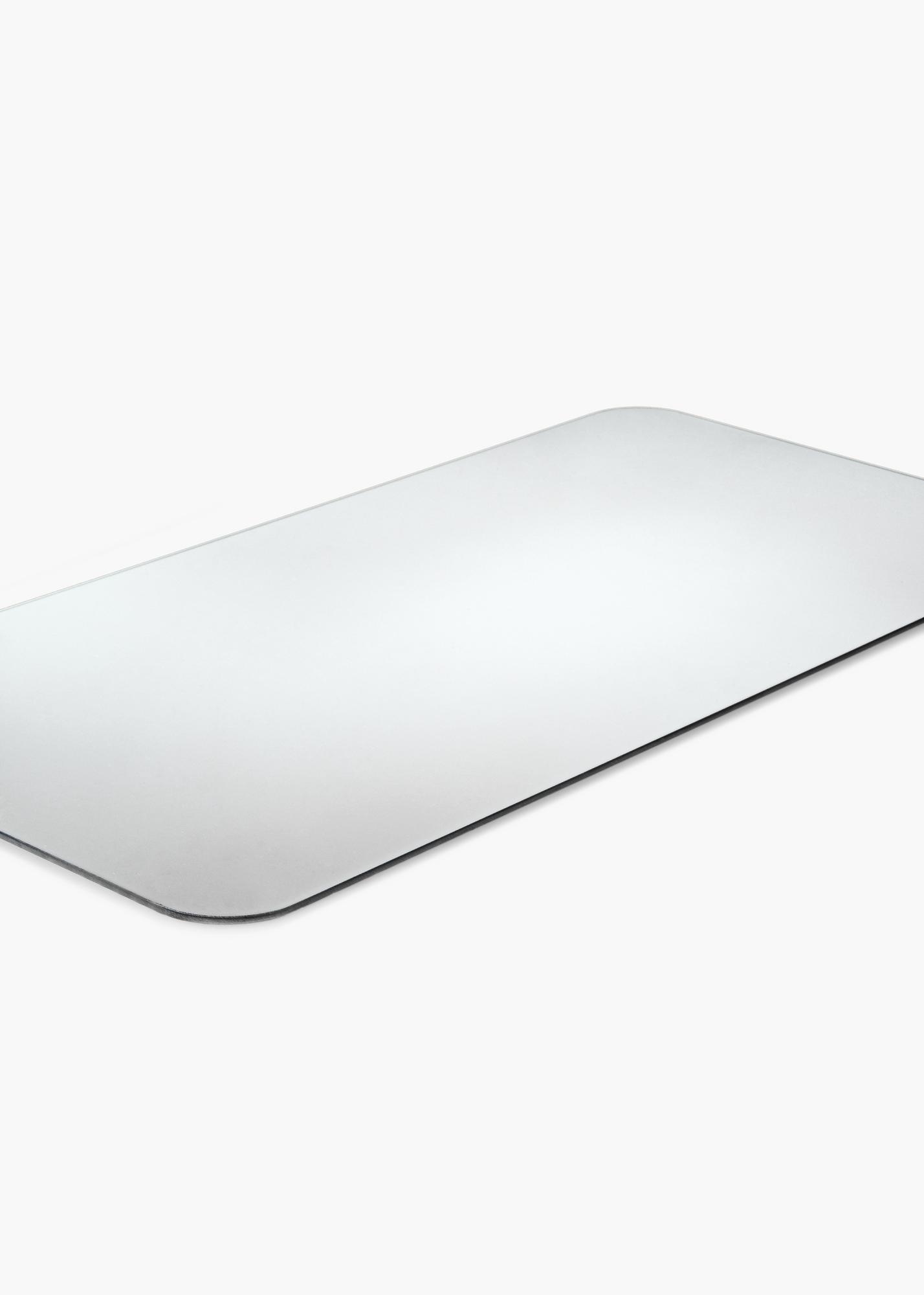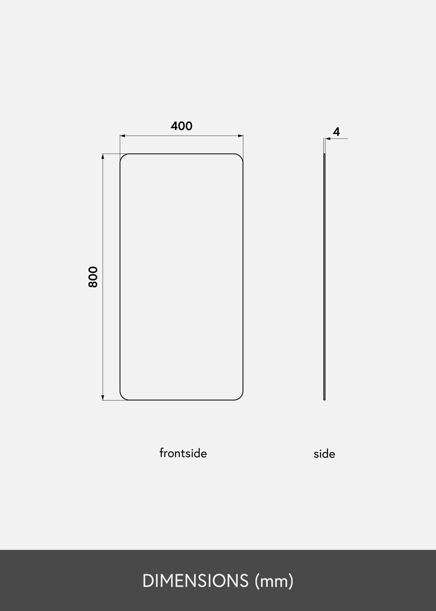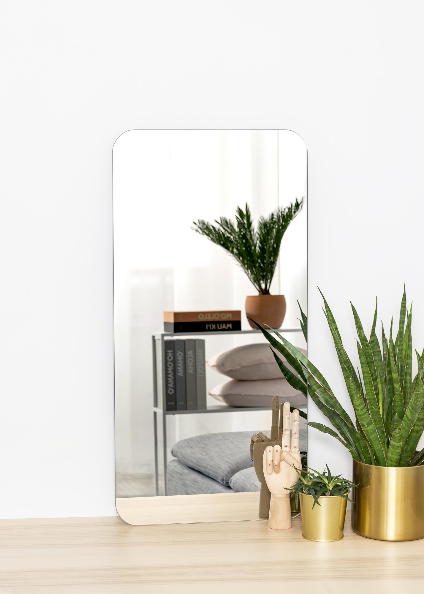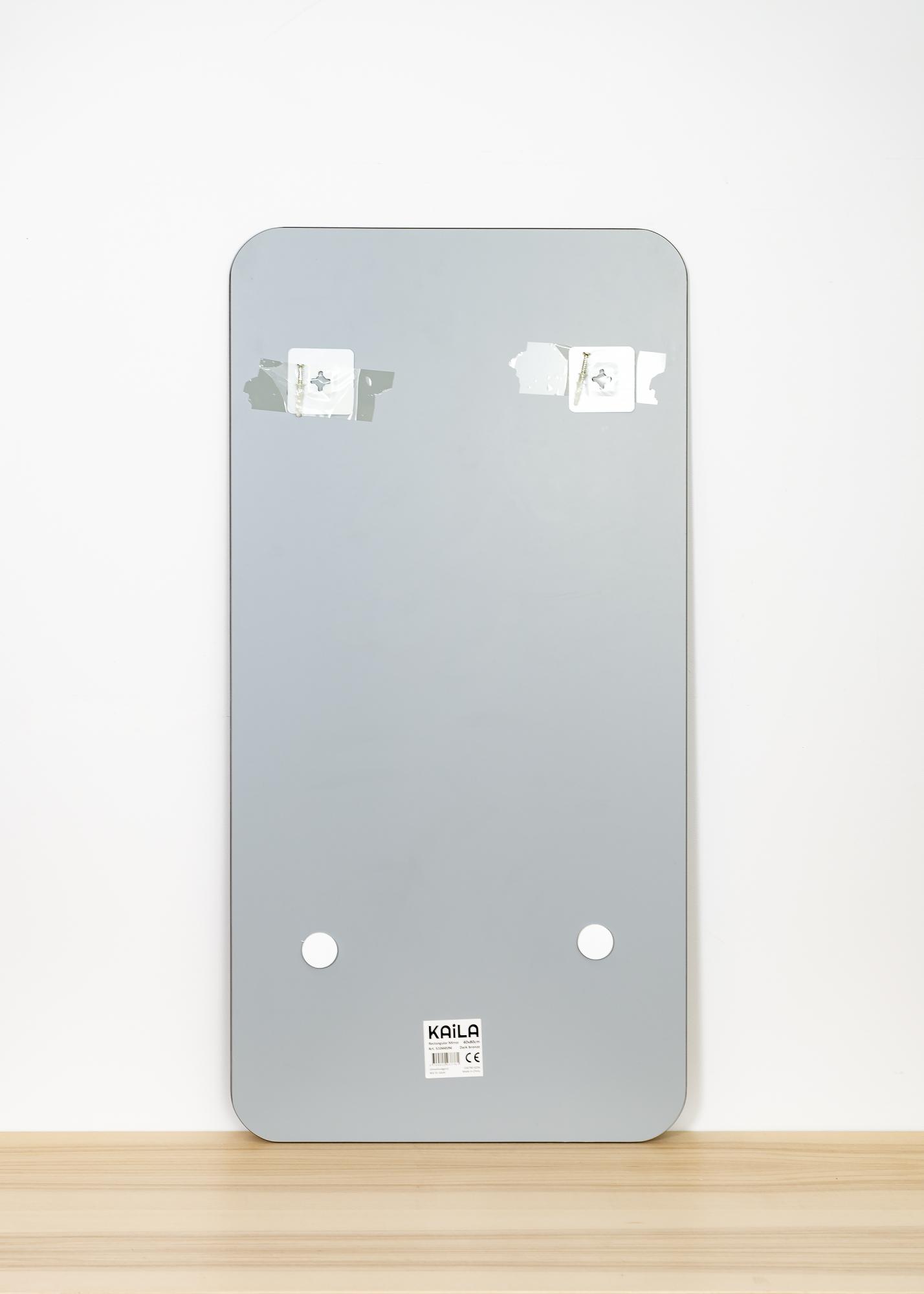 To je pravokotno ogledalo z dodatnim pridihom: zaobljenimi vogali, ki dodajo mehkobo in elegance celoti. Ogledalo je tudi zelo tanko in nima okvirja, kar mu daje minimalističen občutek.