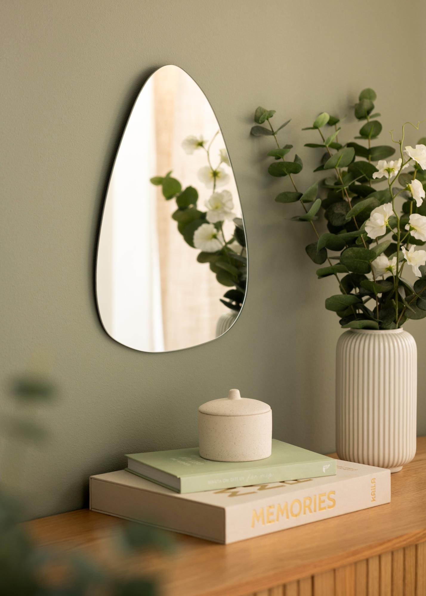 Asimetrično ogledalo bo zanimiva in trendovska notranja dekoracija v vašem domu! To ogledalo je poleg tega zelo tanko, kar poudarja njegov eleganten videz.