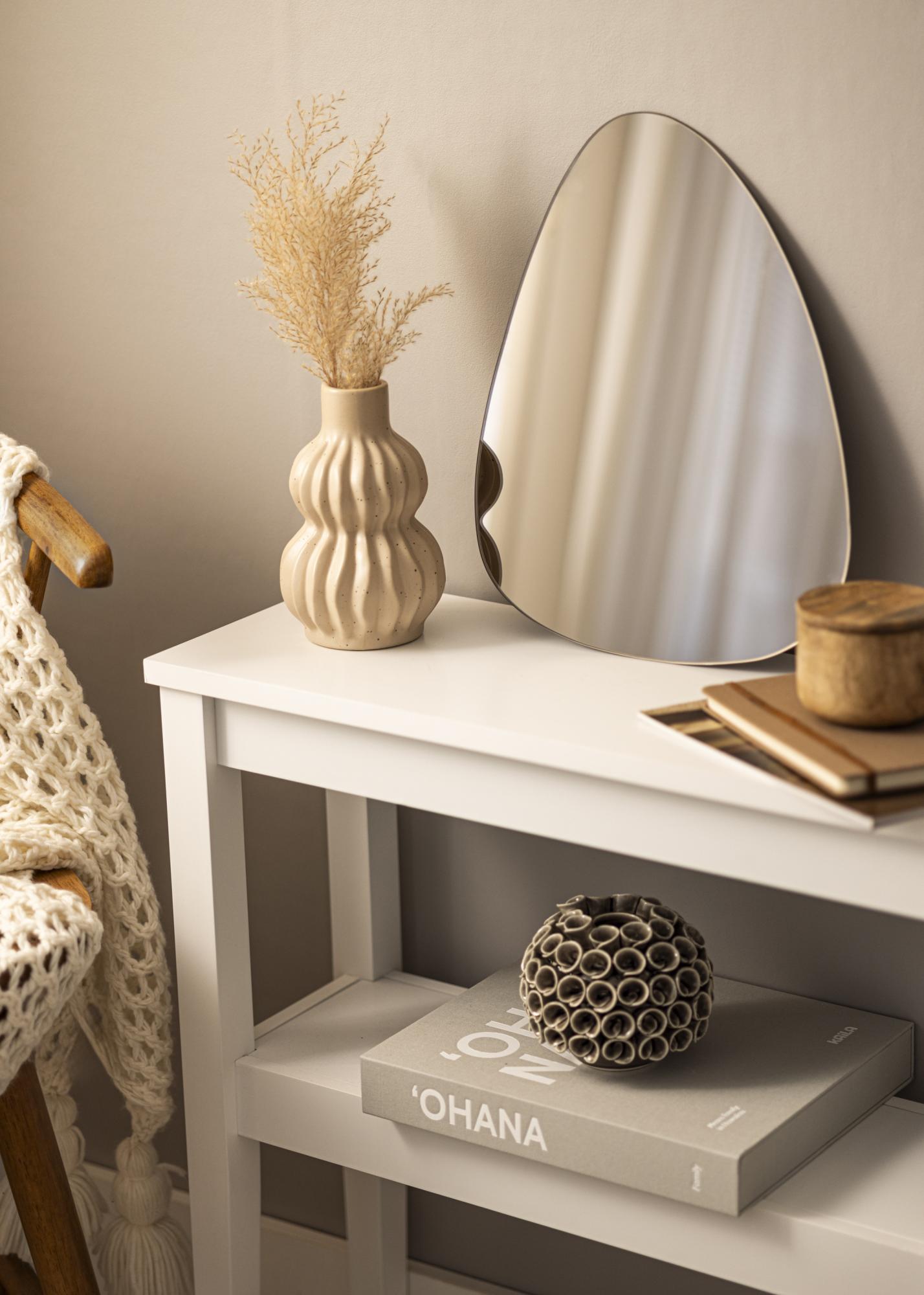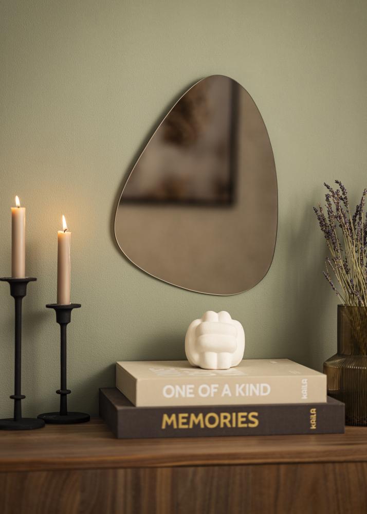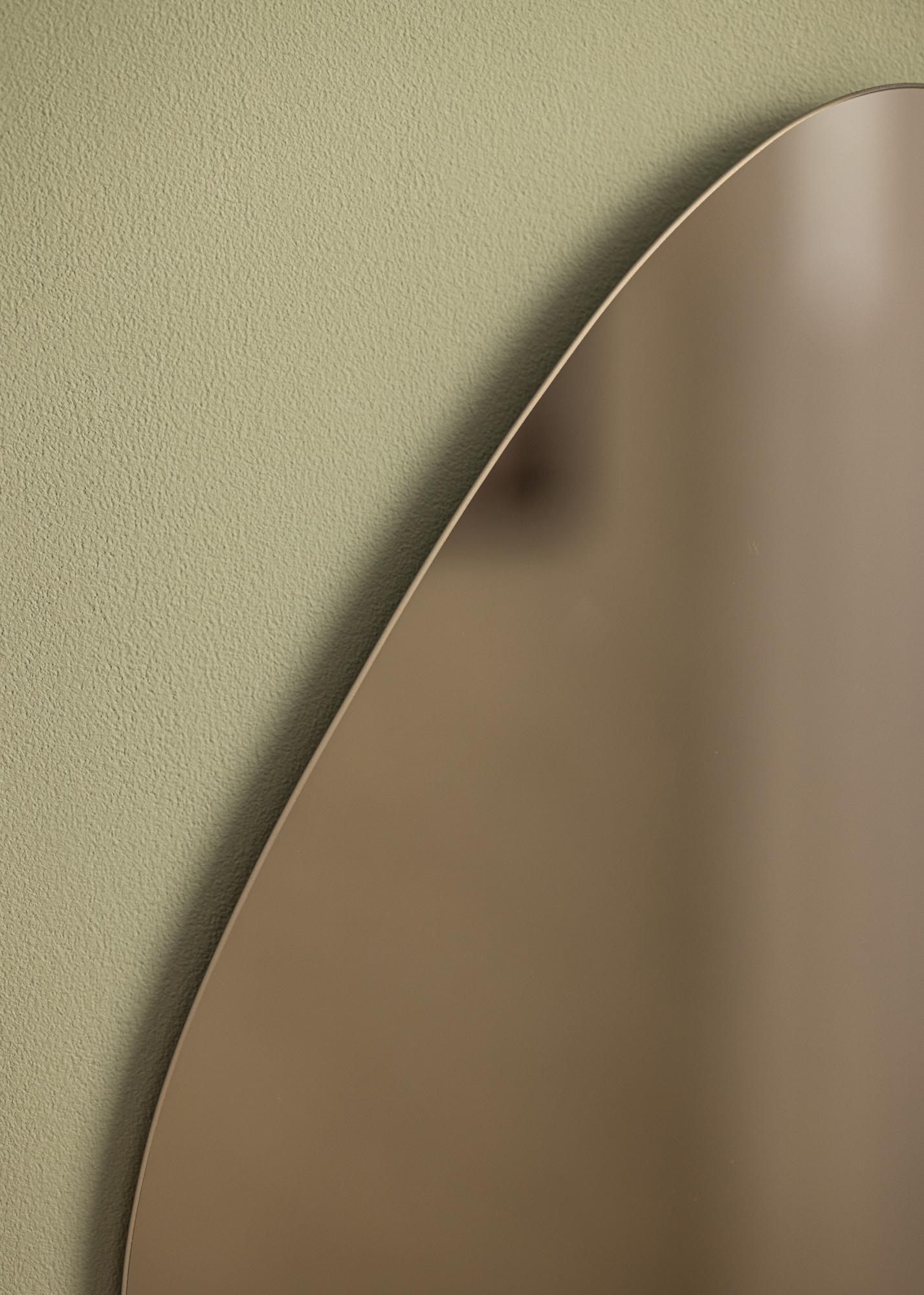 To asimetrično ogledalo bo postalo res eleganten in trendovski dekorativni element v vašem domu! Poleg zanimive jajčaste oblike, ima to ogledalo tudi elegantno bronasto tonirano steklo, ki dodatno poudarja sodobno podobo in lepo harmonizira z različnimi barvnimi shemami. Mehka oblika v kombinaciji z dejstvom, da je ogledalo zelo tanko in nima okvirja, daje ogledalu redko eleganten in prefinjen občutek. Popolno kot funkcionalen in trendovski stenski dekor v dnevni sobi, hodniku ali spalnici.