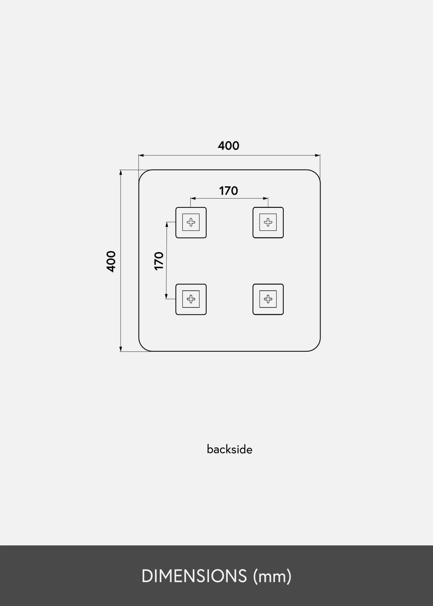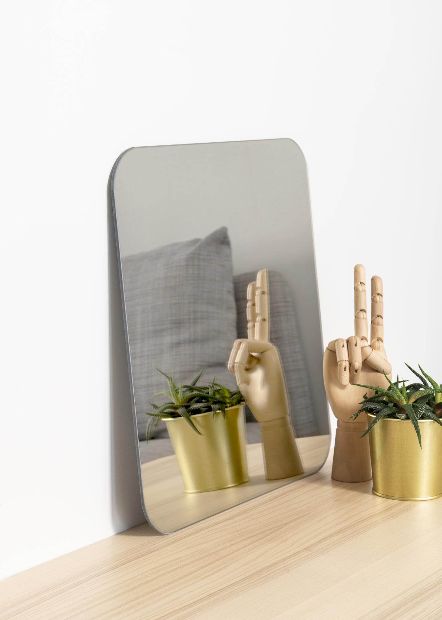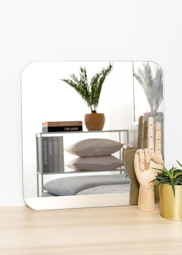 To je kvadratno ogledalo z zaobljenimi vogali, ki mehča vtis in mu daje eleganten občutek. Ogledalo je prav tako le 4 mm tanko in nima okvirja, kar mu daje minimalističen videz in omogoča, da se zlahka prilega v katerikoli dom.