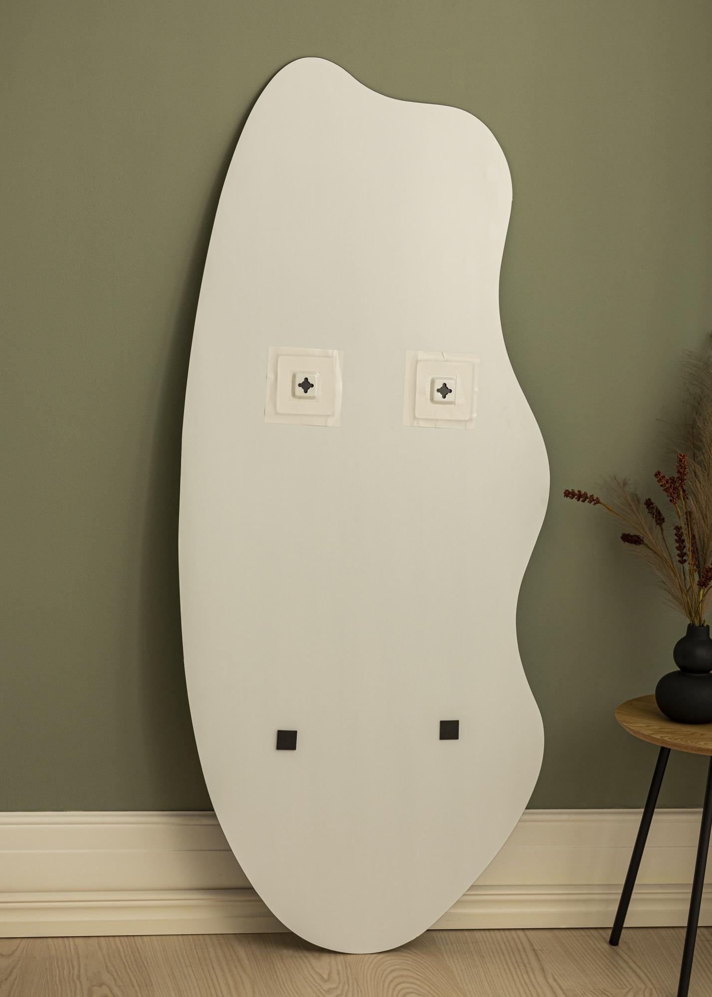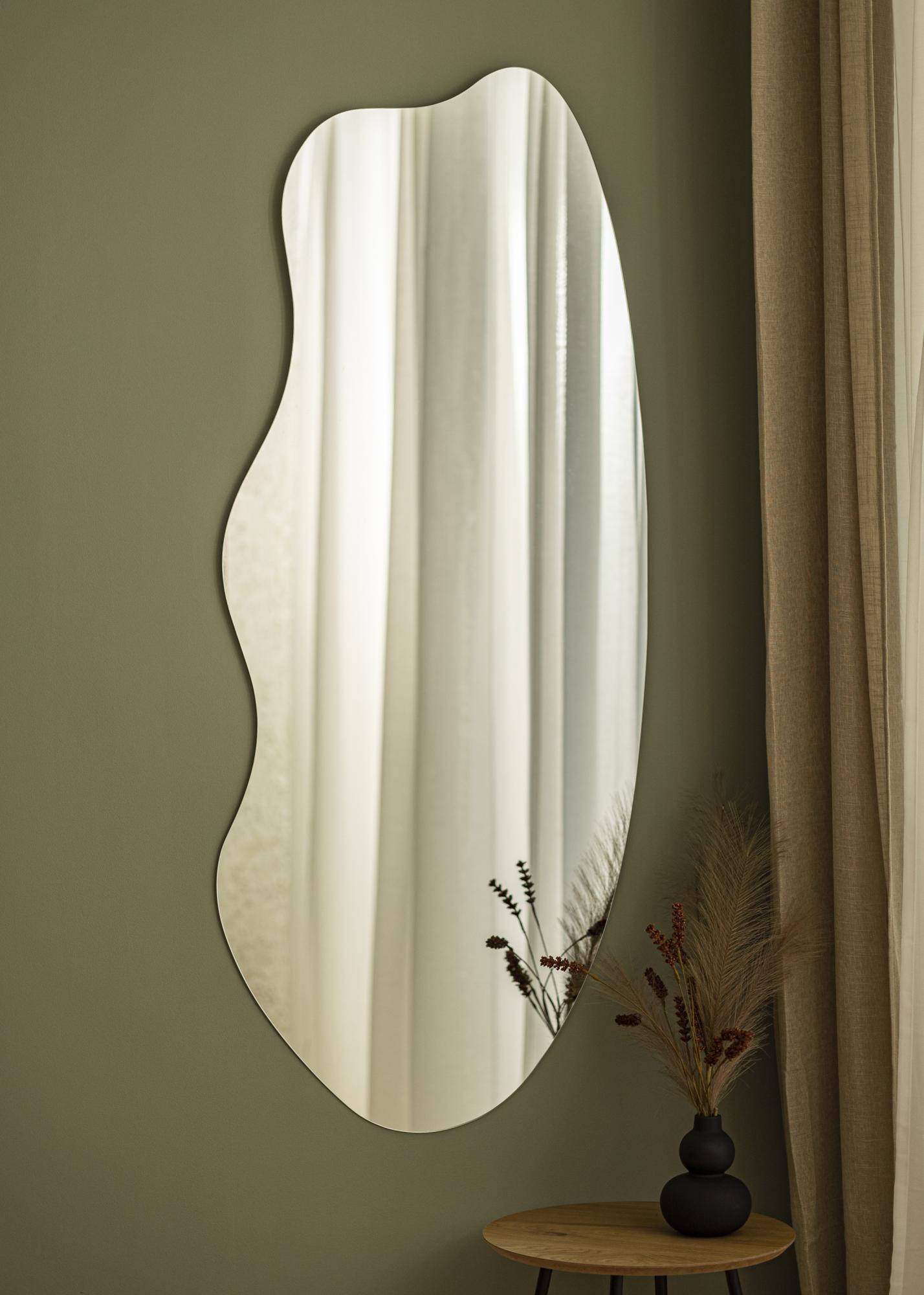 Asimetrično stensko ogledalo je opazen dekorativni element v vsakem domu. To ogledalo ima edinstveno obliko, kjer je ena dolga stran zaobljena, druga pa ima valovito obliko. Skupaj tvori vznemirljivo in elegantno celoto. Ogledalo se enako dobro prilega tako v predsobi kot v dnevni sobi, prav tako pa deluje kot trendovsko kopalniško ogledalo.