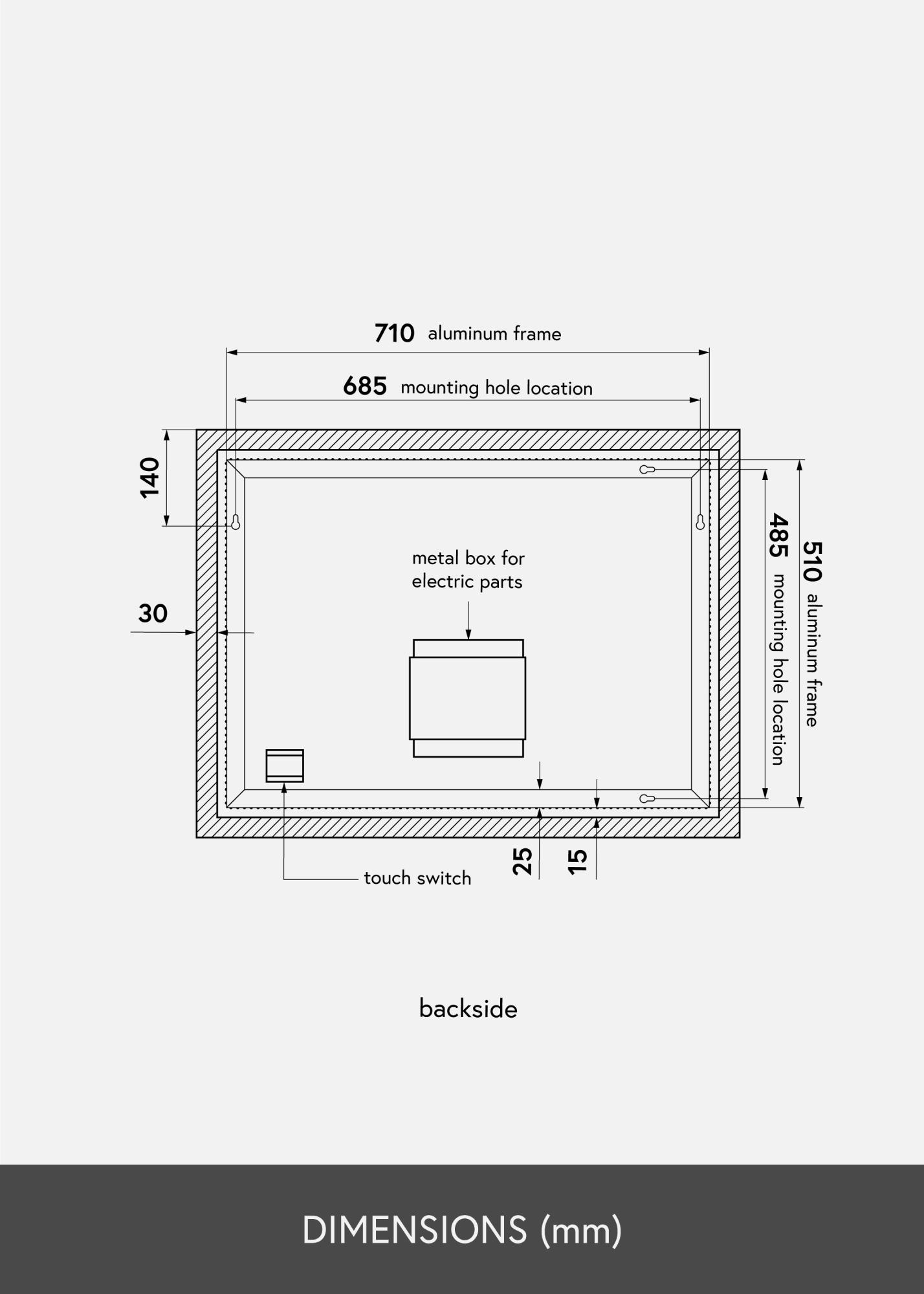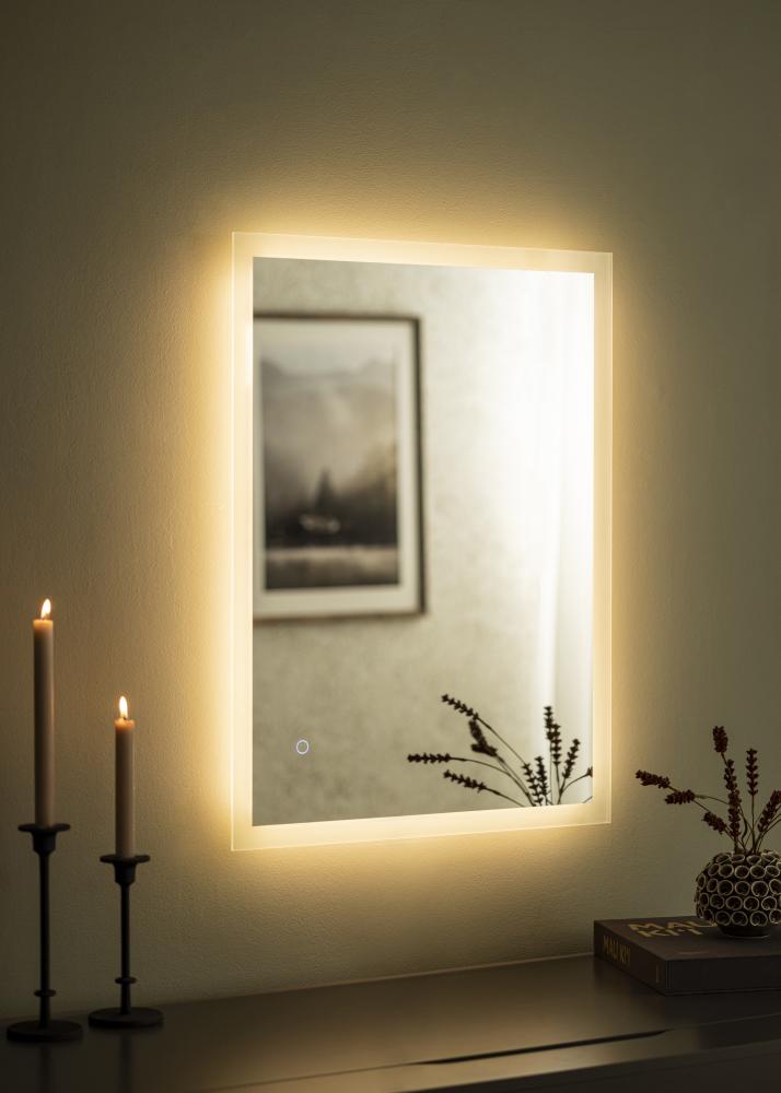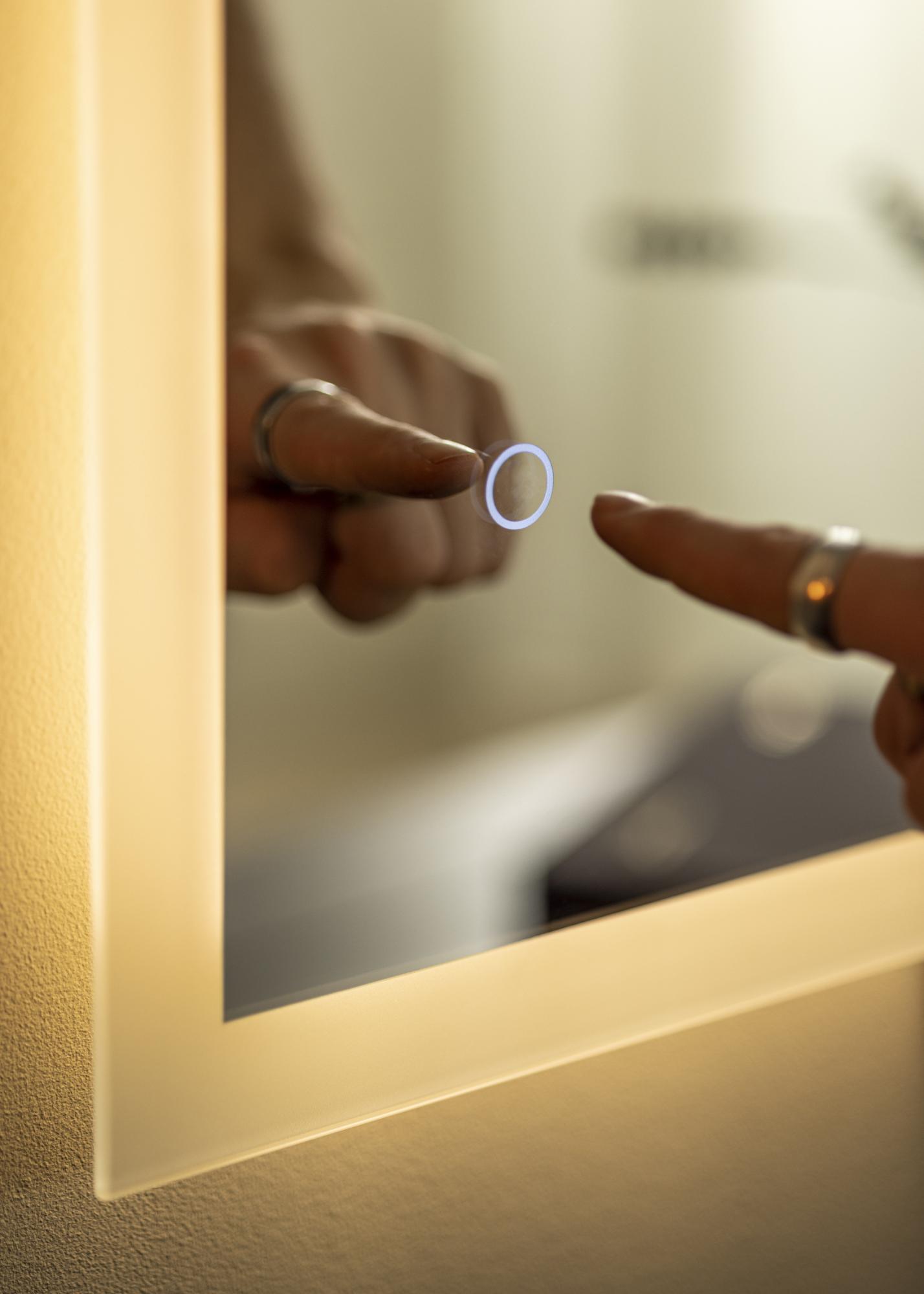 To brezčasno ogledalo z osvetlitvijo bo dvignilo stil v vaši kopalnici. Ima vgrajen LED trak na zadnji strani ogledala, kar ustvarja mehko osvetlitev, ki uokvirja površino ogledala. Osvetlitev oddaja svetlobo pri 3000K, ki jo lahko zatemnite s pritiskom na dotik v enem kotičku ogledala za nekaj sekund. Svetlost je mogoče nastaviti od 10% do 100%.