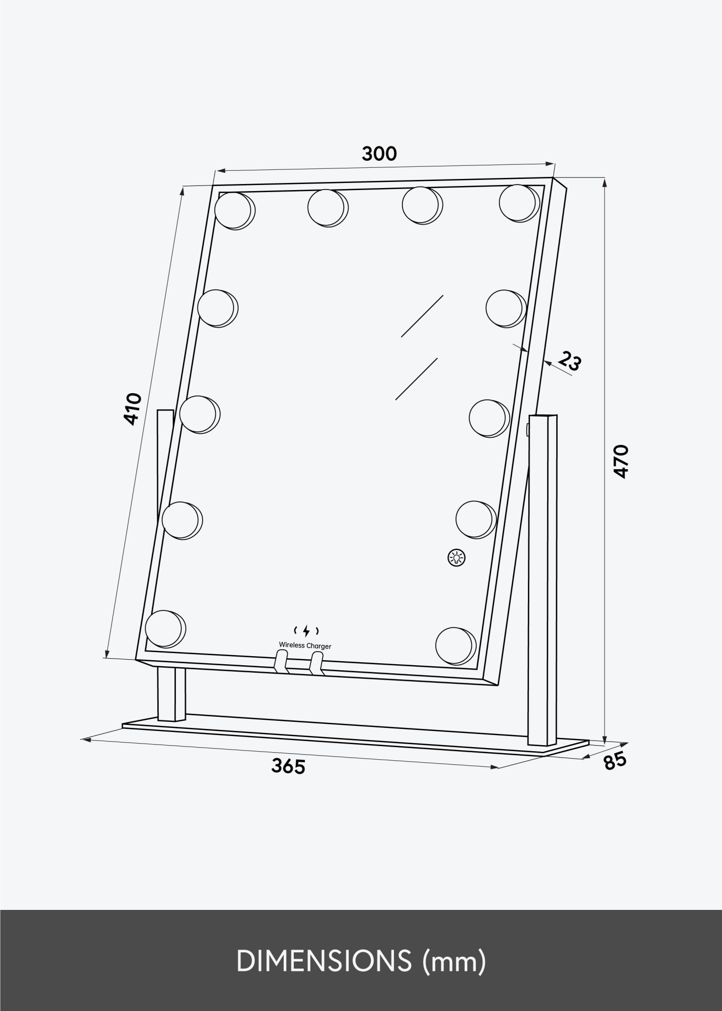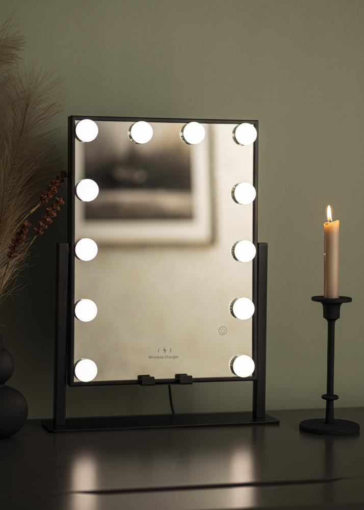 Želite napolniti svoj pametni telefon medtem ko sedite pred ogledalom? Ni problema. To ličilno ogledalo ima namreč vgrajeno polnjenje za vse pametne telefone, ki podpirajo brezžično polnjenje. Preprosto postavite svojo napravo na ustrezno mesto na ogledalu in napolnite svoj pametni telefon z 5V/2A (10 W). Funkcija je vedno vklopljena, ko je ogledalo prižgano.