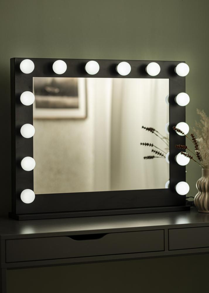 KAILA Ogledalo za ličenje Hollywood 14 E27 Črna 80x65 cm