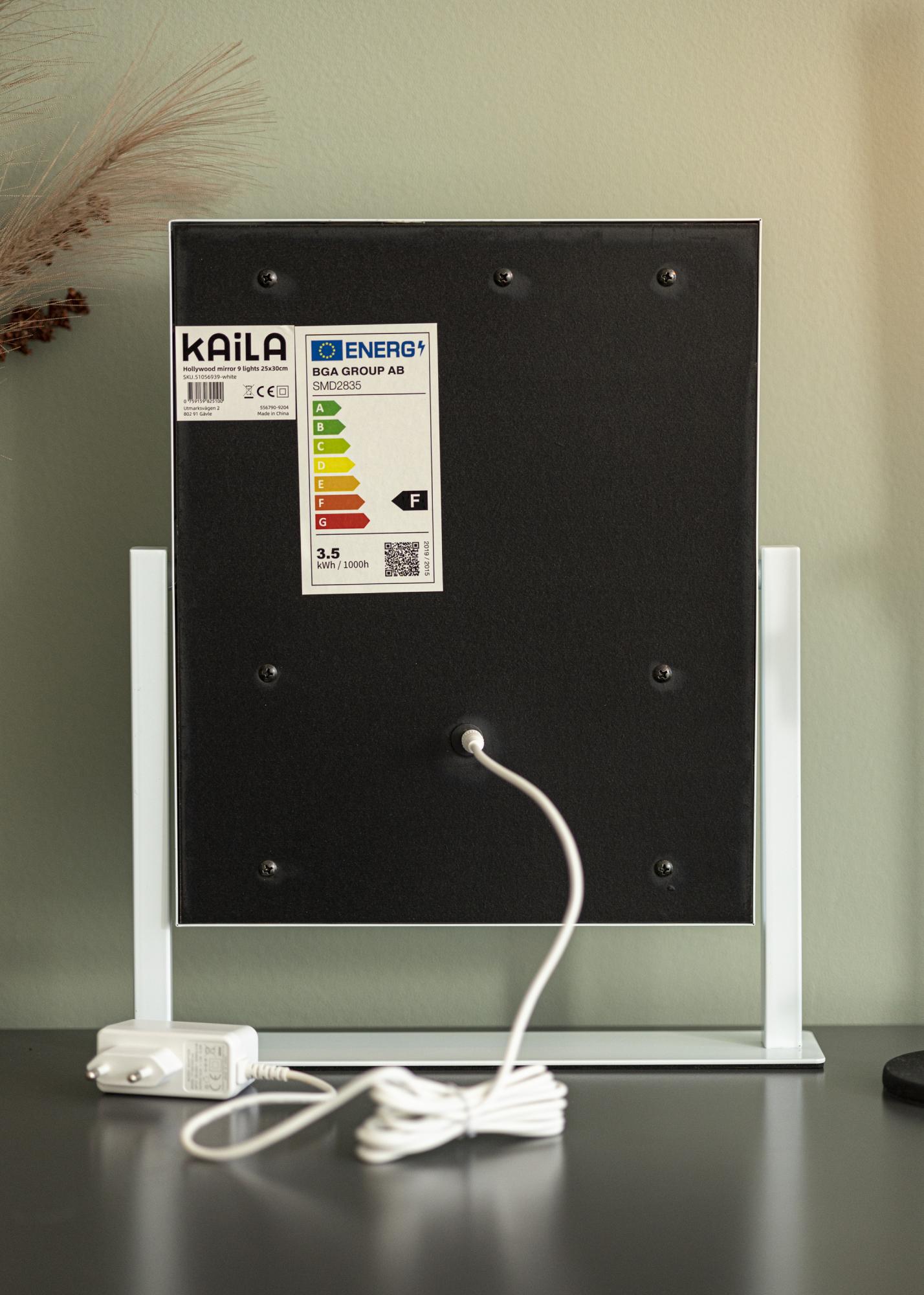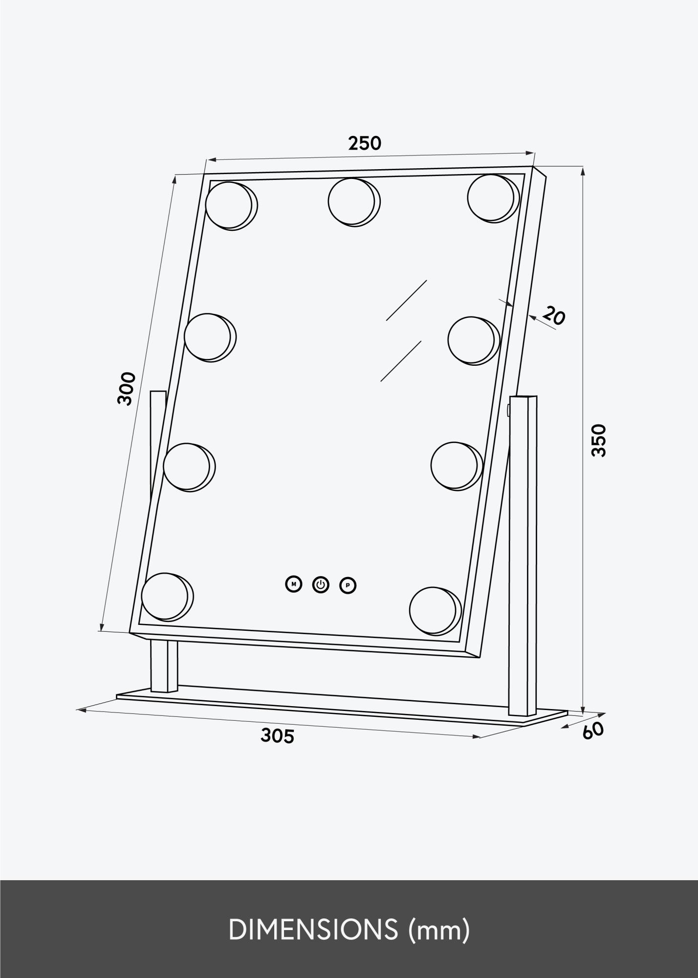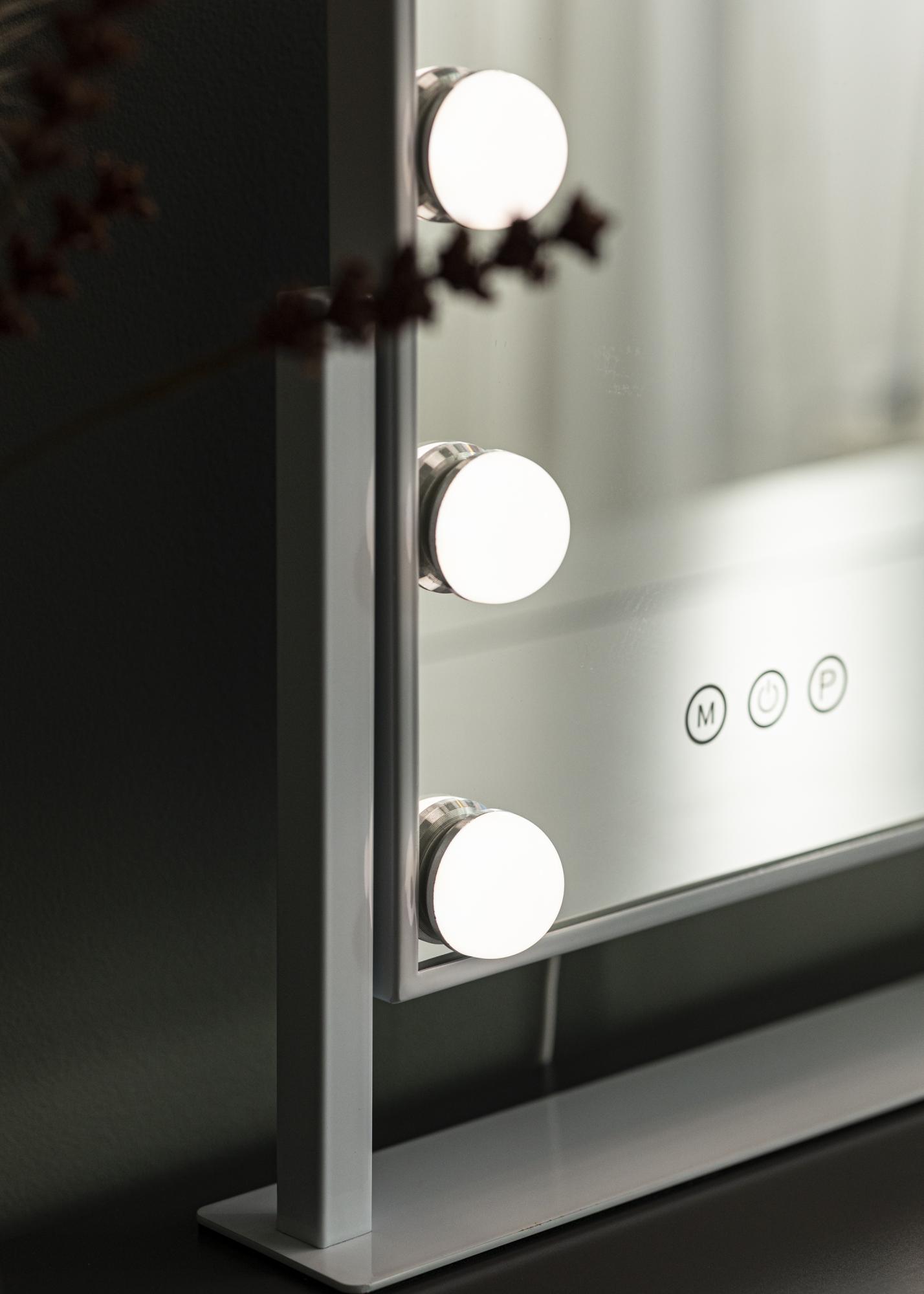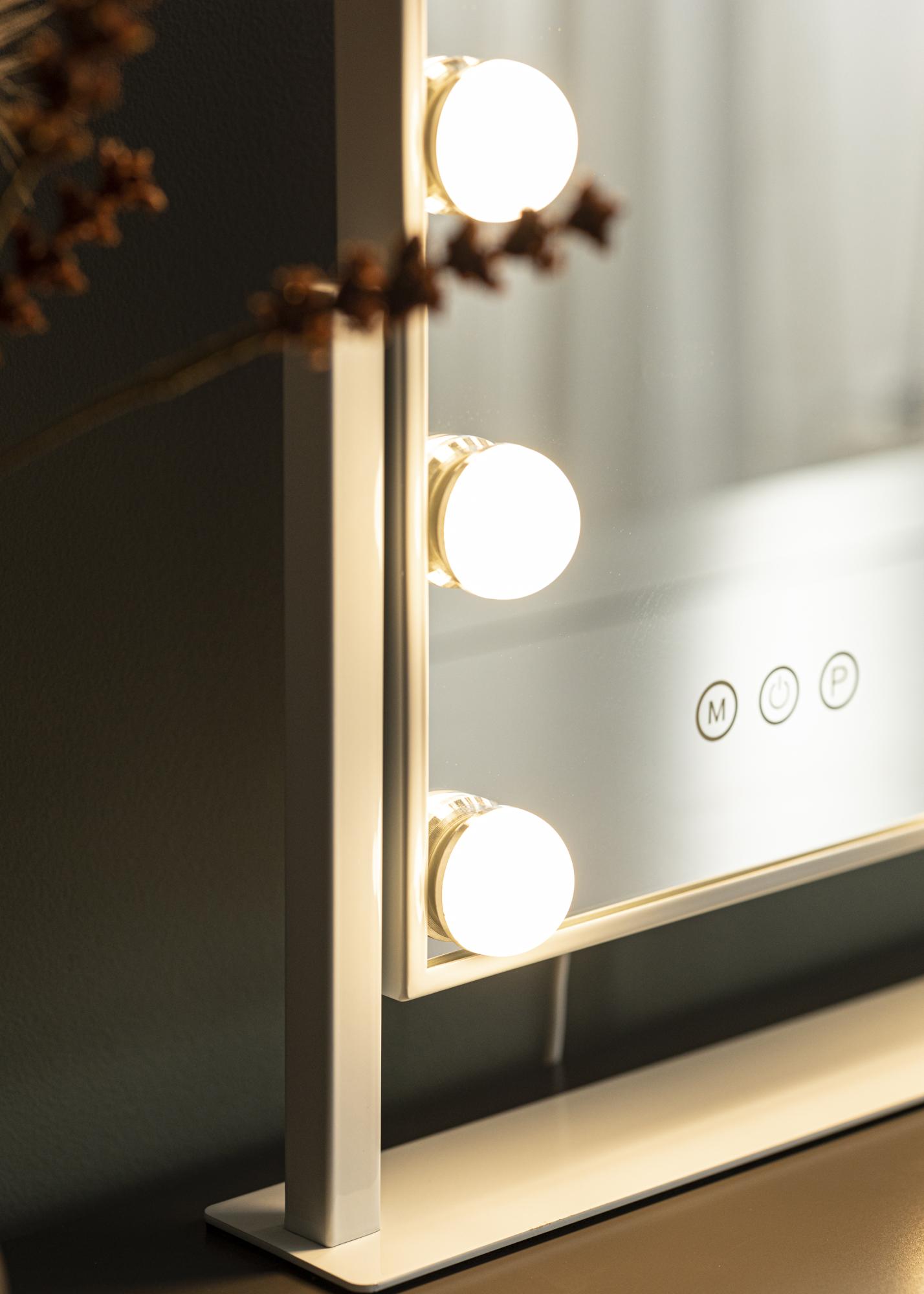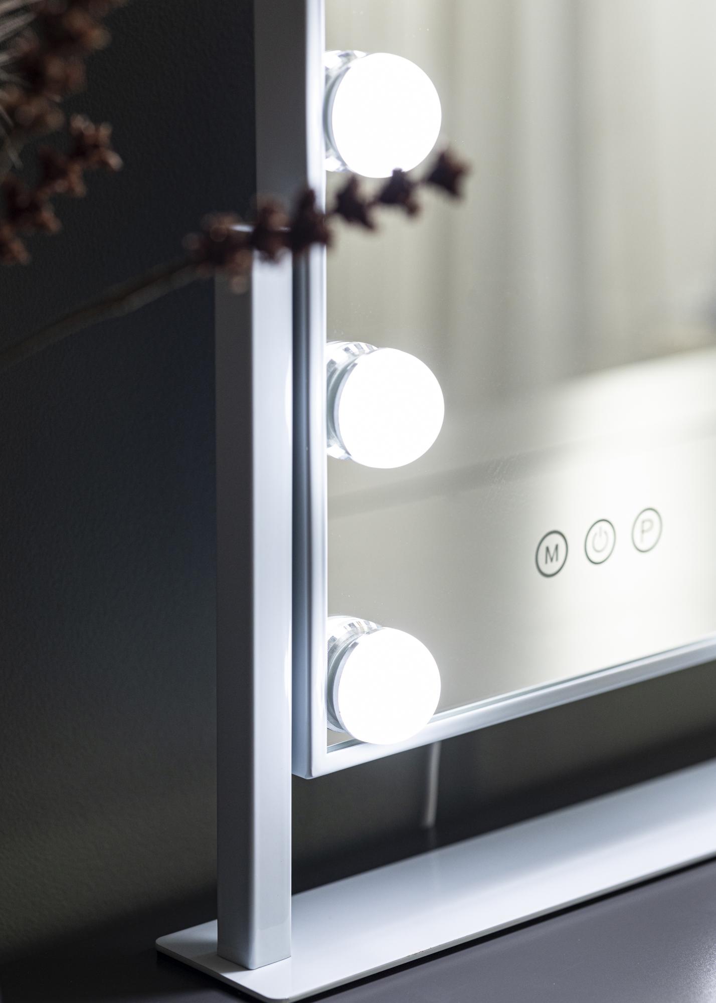 Ta ogledalo za ličenje je popolno za vas, ki želite imeti ustrezno osvetlitev, ko sedite pred ogledalom. Oblikovanje, navdihnjeno s Hollywoodom, z večjimi LED-lučmi, ki obkrožajo površino ogledala, omogoča, da je ogledalo tudi lepo ozadje osvetlitve v dnevni sobi ali hodniku. Površino ogledala je mogoče nagibati navzven ali navznoter za dodatno prilagodljivost pri uporabi.