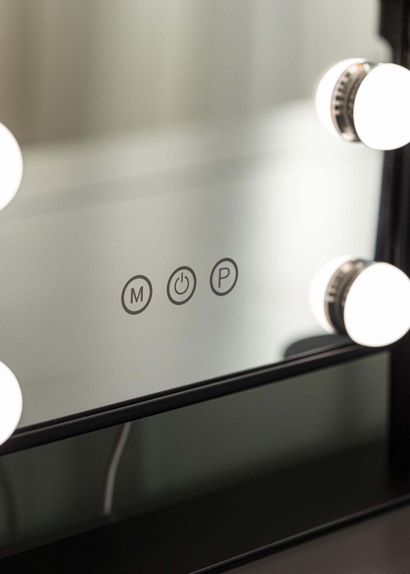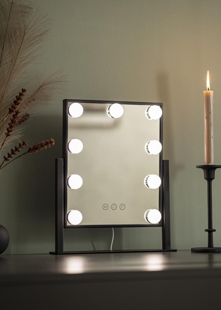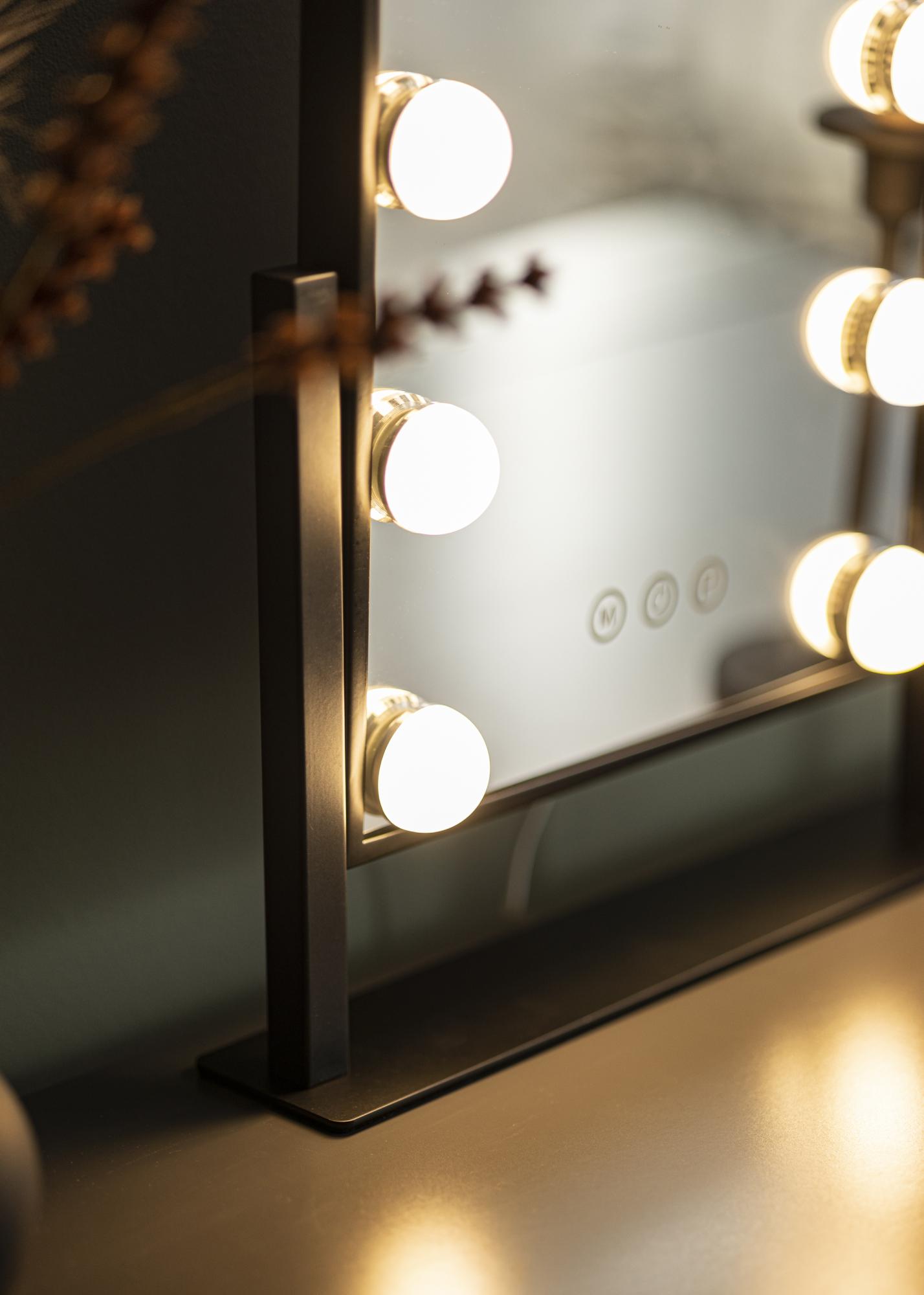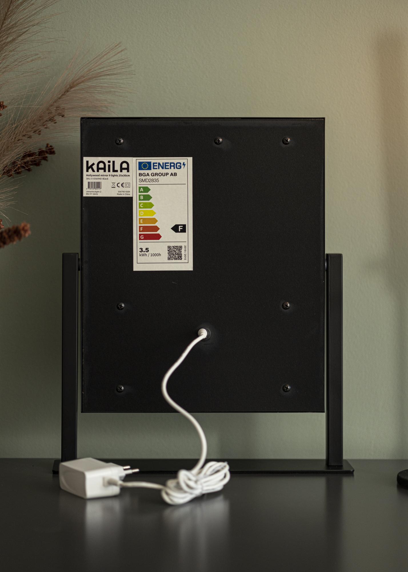 Za pravo hollywoodsko vzdušje si omislite to ličilno ogledalo znamke KAILA. Razkošno ogledalo je tako elegantno kot praktično, z 9 LED-lučkami, ki zelo sofisticirano obdajajo površino ogledala. Črna barva dodaja klasičen občutek in omogoča enostavno kombiniranje ogledala z dekorjem v različnih prostorih.