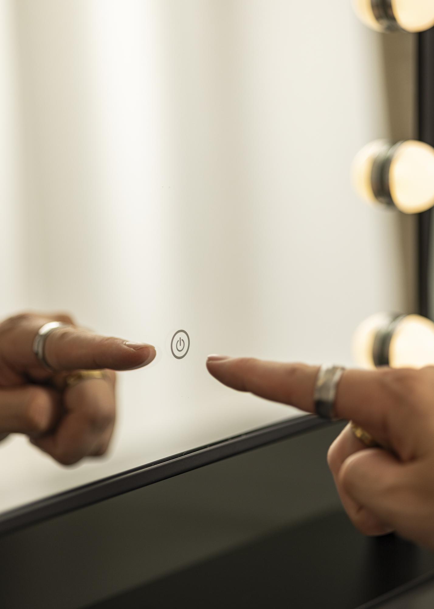 To čudovito kozmetično ogledalo s 15 LED žarnicami in veliko površino ogledala je popolno ogledalo za nanašanje ličil! Elegantno Hollywood ogledalo je v črnem odtenku in LED lučke lepo uokvirjajo površino ogledala. Kozmetično ogledalo je mogoče nagibati, tako da se lahko ogledate iz različnih kotov in enostavno uspešno uredite svoj make-up!