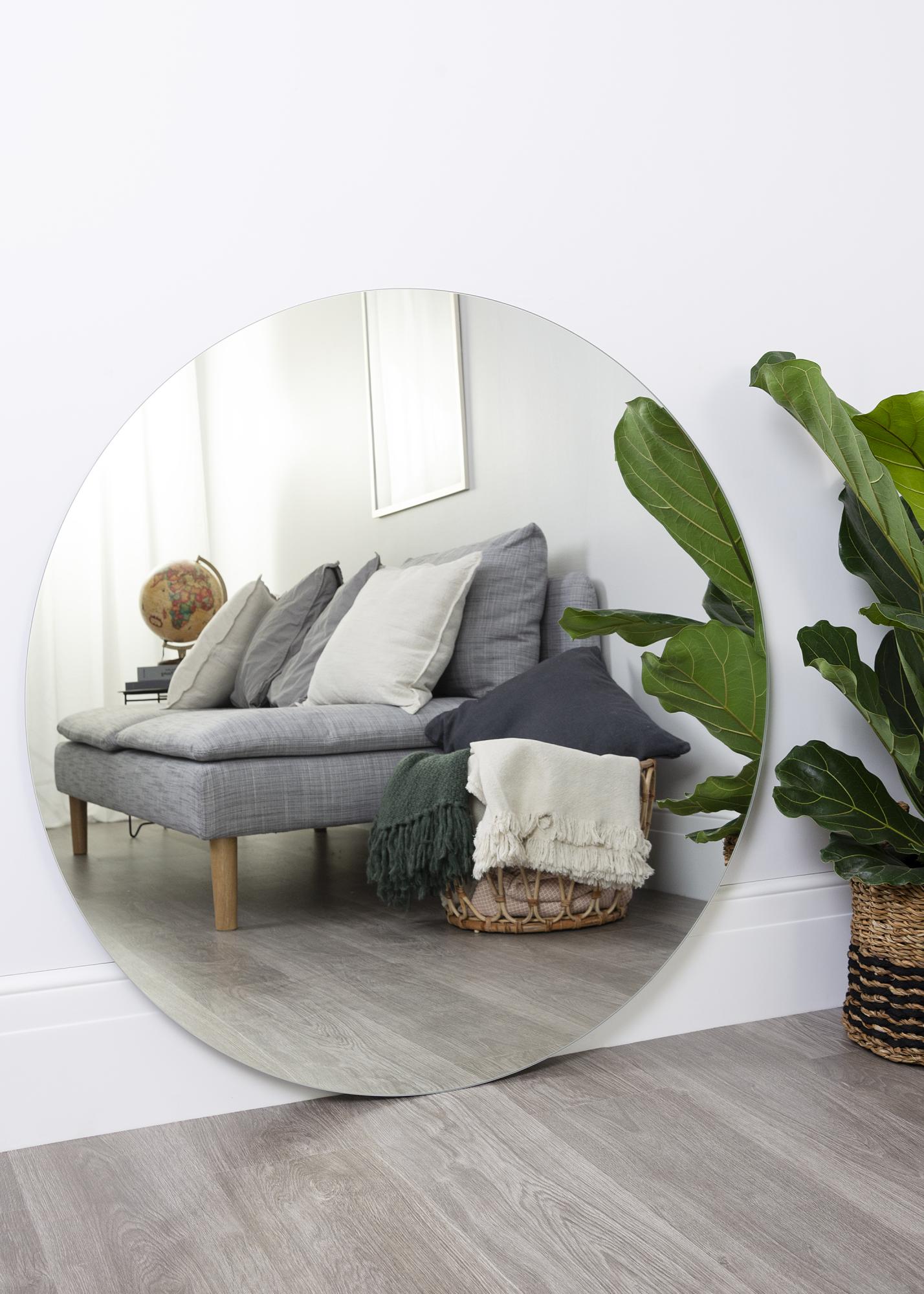 100 cm Ø okroglo ogledalo, ki je del serije okroglih ogledal znamke KAILA. Na voljo je v vseh 13 velikostih, tako da najdete velikost, ki popolnoma ustreza vaši sobi. Ogledalo je izjemno tanko in elegantno ter se ujema z vsemi vrstami sob in notranjih stilov.