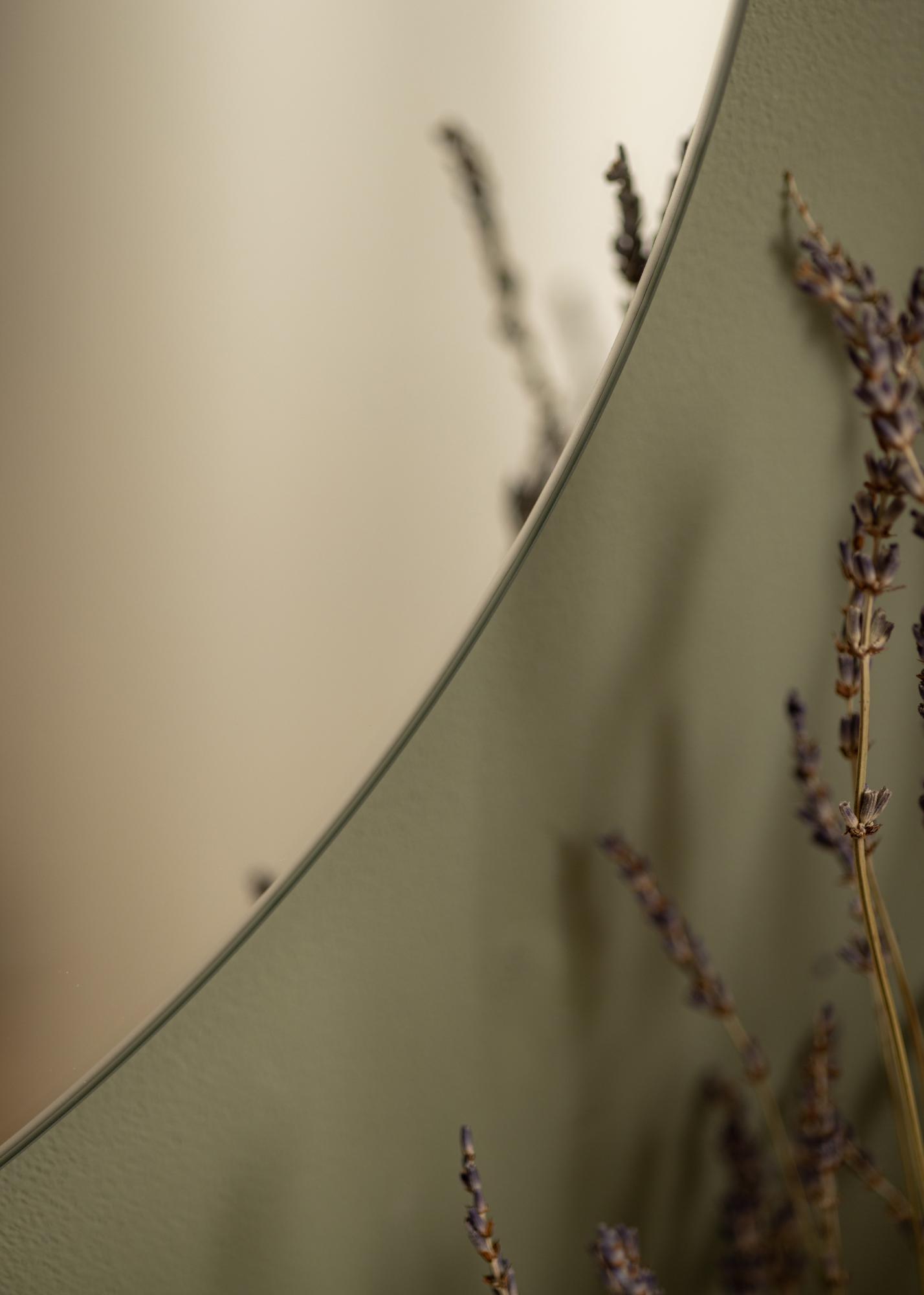 55 cm Ø okroglo ogledalo, ki je del serije okroglih ogledal znamke KAILA. Na voljo v kar 13 velikostih, tako da boste našli tisto, ki se popolnoma prilega vaši sobi. Ogledalo je izjemno tanko in elegantno ter se prilega vsem vrstam prostorov in slogom notranje opreme.