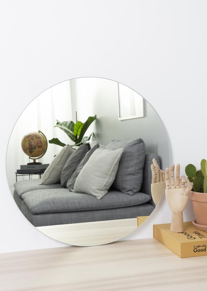 65 cm Ø okroglo ogledalo, ki je del serije okroglih ogledal znamke KAILA. Na voljo v celoti 13 velikostih, da najdete točno tisto, ki se popolnoma prilega vaši sobi. Ogledalo je izjemno tanko in elegantno, zato se prilega v vse vrste sob in notranjih stilov.