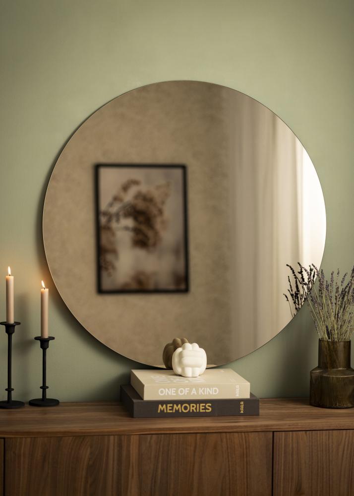 To okroglo ogledalo ima tanek dizajn brez okvirja, kar daje eleganten in ekskluziven videz, ki dviguje vsak prostor. Z ogledalnim steklom v bronasti odtenku ima stensko ogledalo bogat in domač videz, ki se popolnoma prilega v moderna stanovanja. Ogledalo je del serije okroglih, bronastih ogledal blagovne znamke KAILA in lahko izbirate med sedmimi različnimi velikostmi, da najdete tisto, ki najbolje ustreza vašemu domu. Ta model ima premer 90 cm. Ogledalo lahko enostavno obesite v hodniku ali dnevni sobi s pomočjo stenskega nosilca.