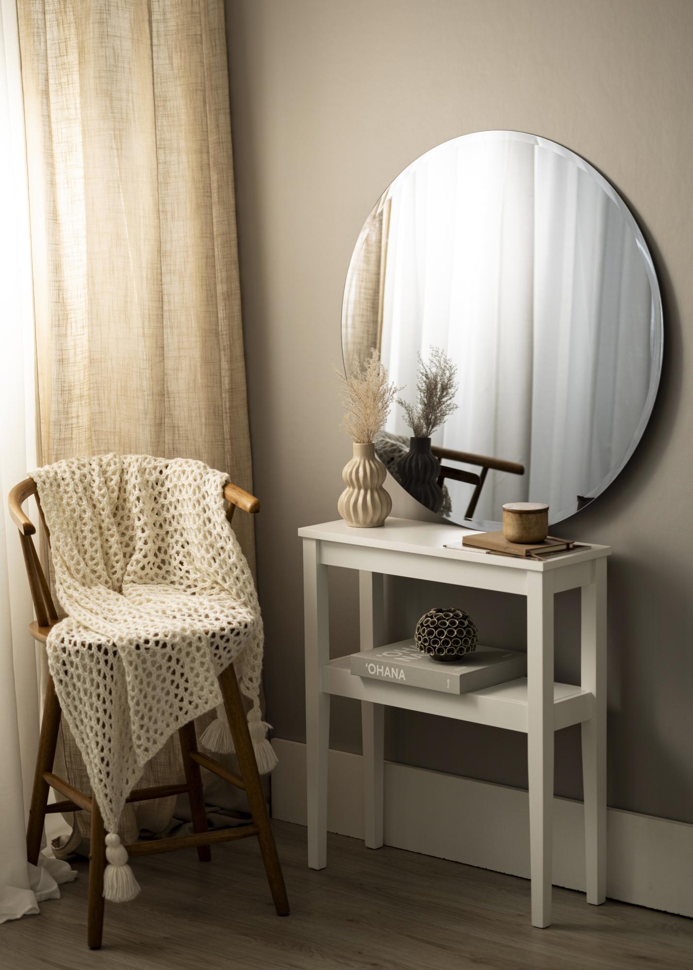 Ogledalo s toniranim steklom je odlična notranja podrobnost z veliko značaja. To je okrogla različica z zatemnjenim steklom – bolj utišana barva, ki daje razkošno, hotelsko občutenje. Siva barva se odlično prilega domovom, urejenim v temnejšem slogu, vendar postane tudi lep kontrast na svetlih stenah. To stensko ogledalo odseva svetlobo podobno kot običajno ogledalo, vendar v mehkejši svetlobni tonaliteti.