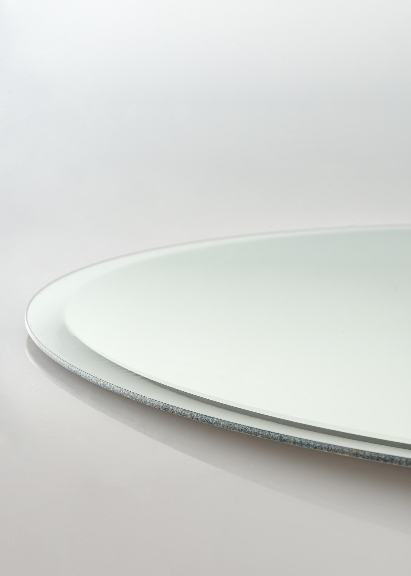 To okroglo ogledalo ima luksuzen fasetiran rob, kar mu daje ekskluziven videz. Moderna, a vendar brezčasna, zasnova omogoča, da ogledalo ustreza vsem domovom in slogom notranje opreme. Okrogla oblika ogledala prav tako ustvarja mehko in vabljivo vzdušje v prostoru, kjer je nameščeno.
