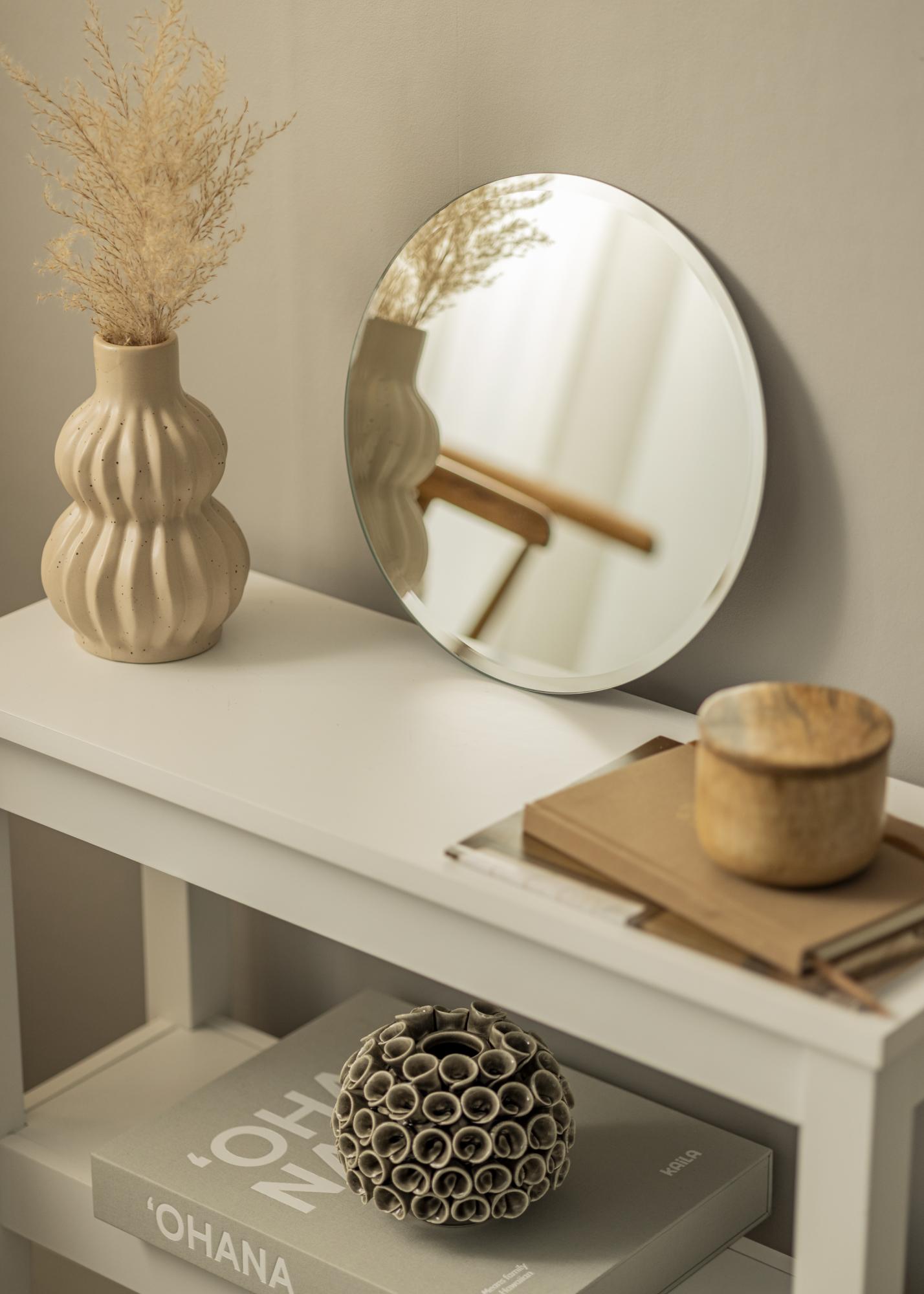 Podrobnosti ustvarjajo celoto! Tako kot pri tem elegantnem stenskem ogledalu; lep fasetno brušen rob, ki daje okroglemu in elegantnemu ogledalu bolj ekskluziven videz. Ogledalova okrogla oblika ustvarja mehkejši občutek v vašem domu, elegantno fasetno brušenje pa pričara občutek za podrobnosti.