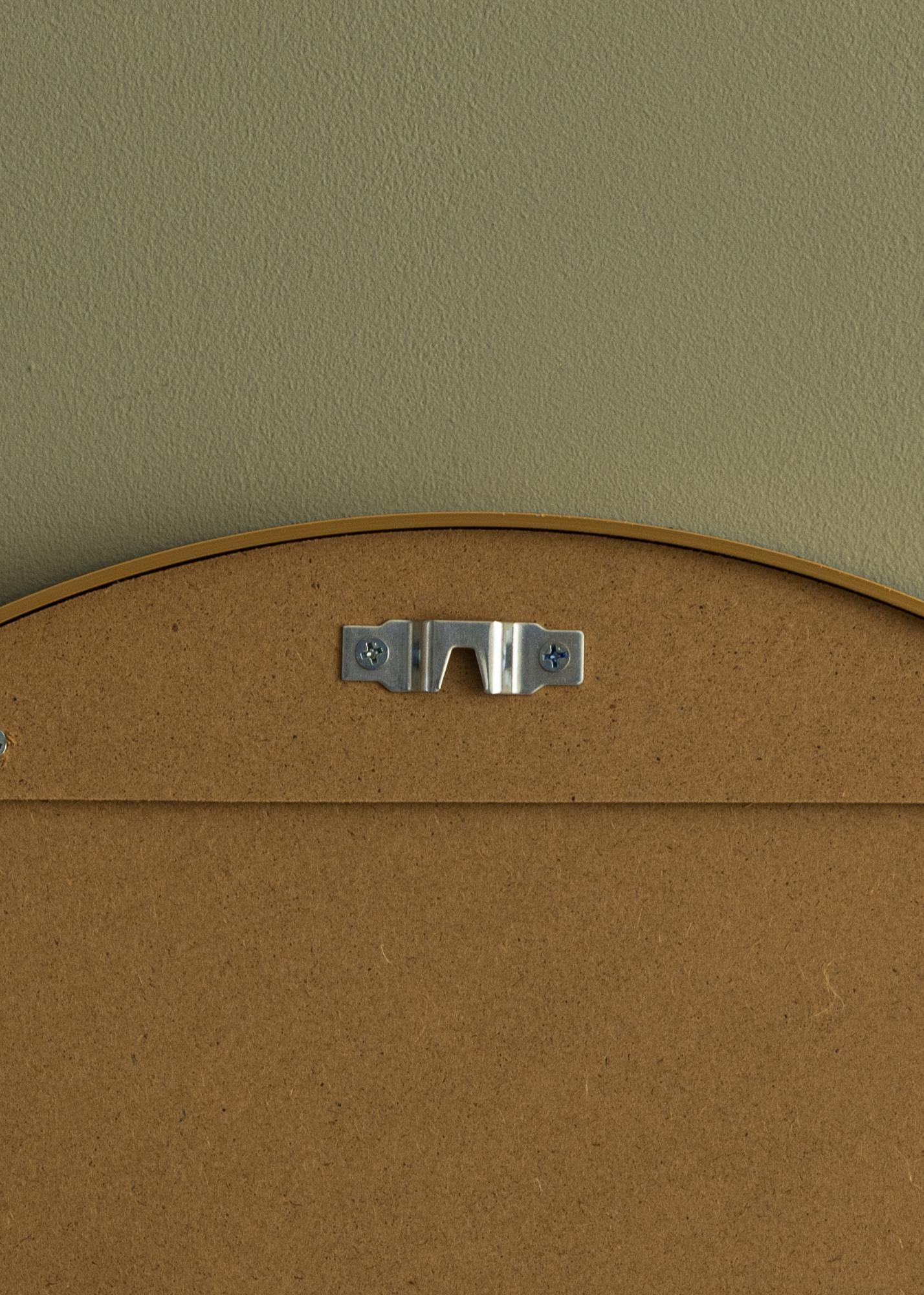 KAILA Round Mirror Edge Gold je na voljo v več različnih velikostih, to ogledalo pa ima premer 50 cm. Hrbtna stran ogledala je opremljena z nosilcem za enostavno in stabilno namestitev na steno, priloženi pa so ustrezni vijaki in vložki.