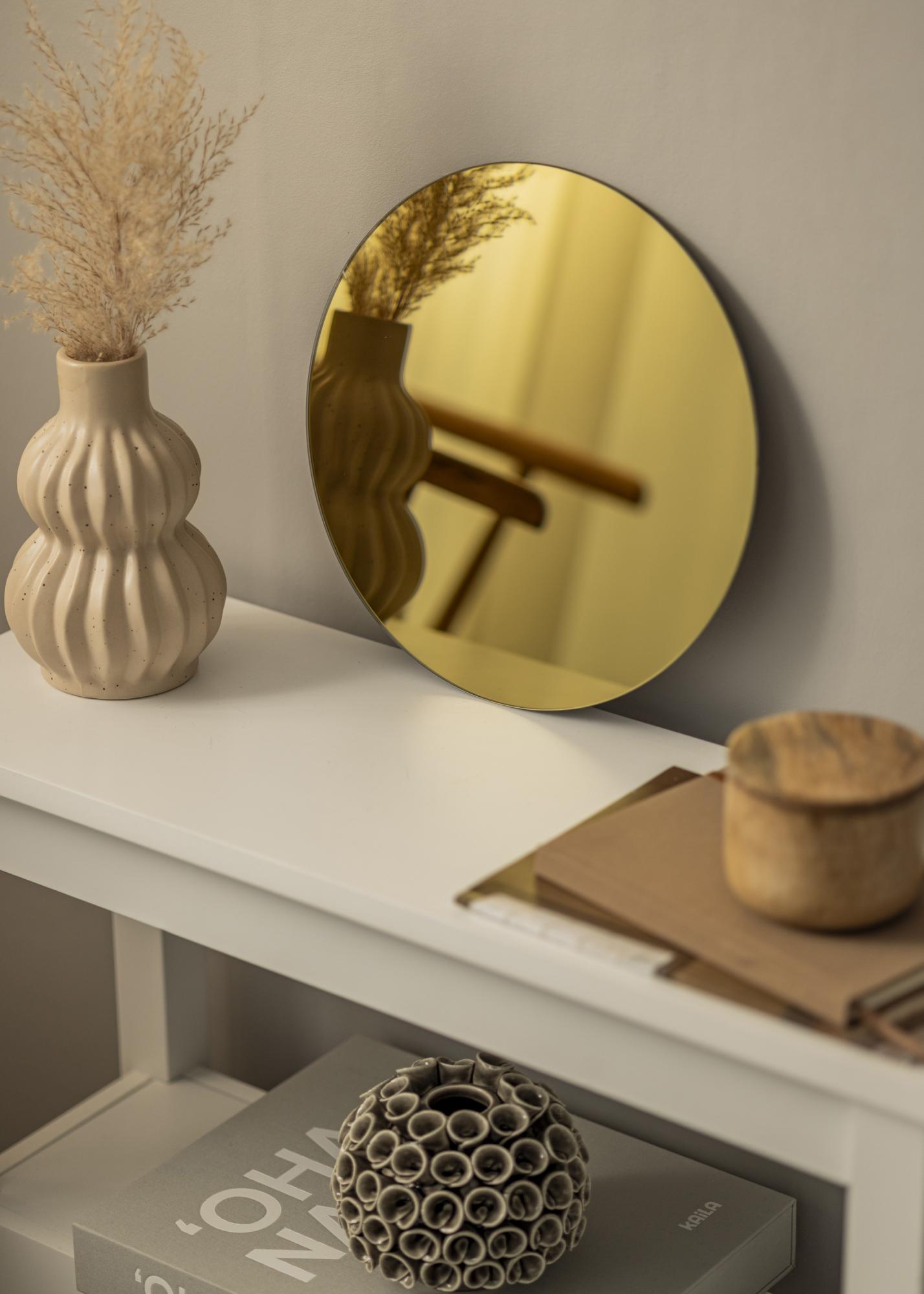 KAILA Okroglo Ogledalo Zlato je na voljo v več velikostih, pri čemer ima ta različica velikost 30 cm Ø.