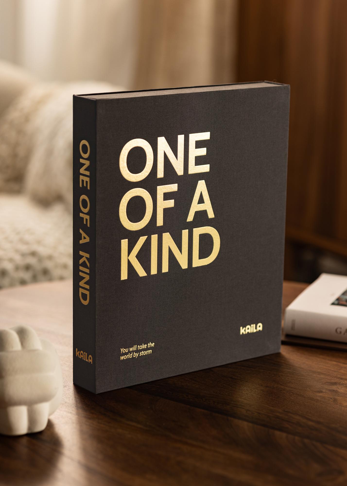 Razvijte svoje fotografije in jih shranite v čudovitem Coffee Table Photo Album! Ta fotoalbum podjetja KAILA je oblečeno v črno tkanino in je zasnovano kot razkošna škatla, kar mu resnično daje ekskluziven občutek. Najboljše je, da je ta fotoalbum prav tako lep kot dekorativni element! Na sprednji strani fotoalbuma je naslov "ONE OF A KIND" natisnjen z velikimi belimi črkami, ter podnaslov "You will take the world by storm", kar naredi ta album popoln za čudovite slike iz otroštva ali za darilo nekomu posebnemu, ali seveda za vaše lastne čudovite fotospomine.