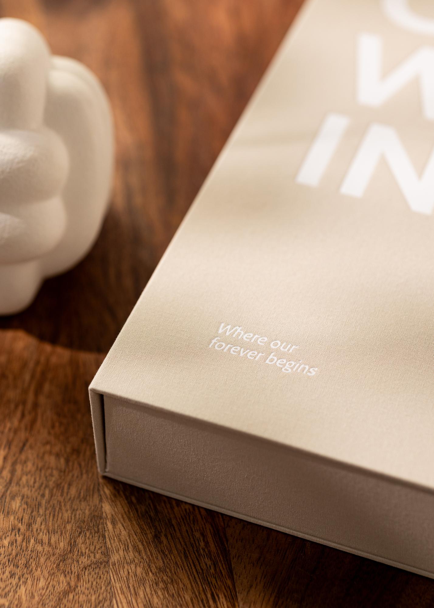 Ujemite in ohranite lepe spomine na vaš veliki dan z albumom KAILA OUR WEDDING Creme - Coffee Table Photo Album. Ta eleganten foto album je zasnovan tako, da je več kot le album; je stilna dekorativna podrobnost, ki jo z veseljem pokažete v vašem domu. S svojimi bež platnicami in črnimi stranmi ustvarja prefinjen kontrast, ki poudari vaše fotografije na najboljši način.