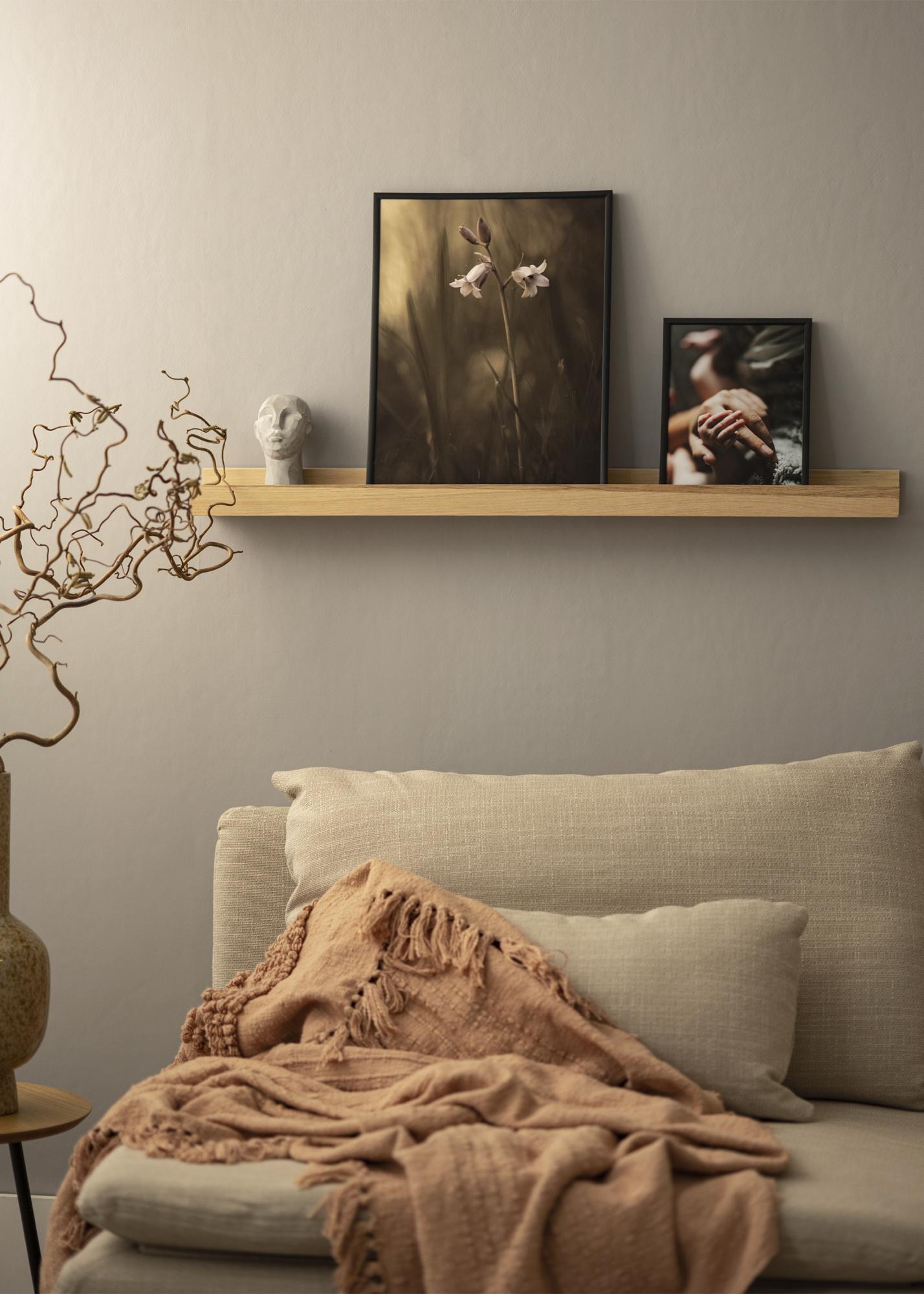 S praktično polico za slike lahko svoje slike razstavite na eleganten način, poleg tega pa vam ponuja izjemne možnosti za spreminjanje vaše stenske umetnosti. Ta polica za slike je izdelana iz masivnega hrasta in ima elegantno obliko z enostavnimi, ravnimi linijami. Sama polica ima vrezano režo, ki nudi podporo vašim slikam in jim omogoča lep kot, kjer se naslonijo na steno. Polica za slike je na voljo v različnih dolžinah, pri čemer ima ta različica dolžino 90 cm. Polica za slike ima tudi predvrtane luknje, poleg tega pa so priloženi tudi ustrezni vijaki in vložki, da bo montaža še lažja.