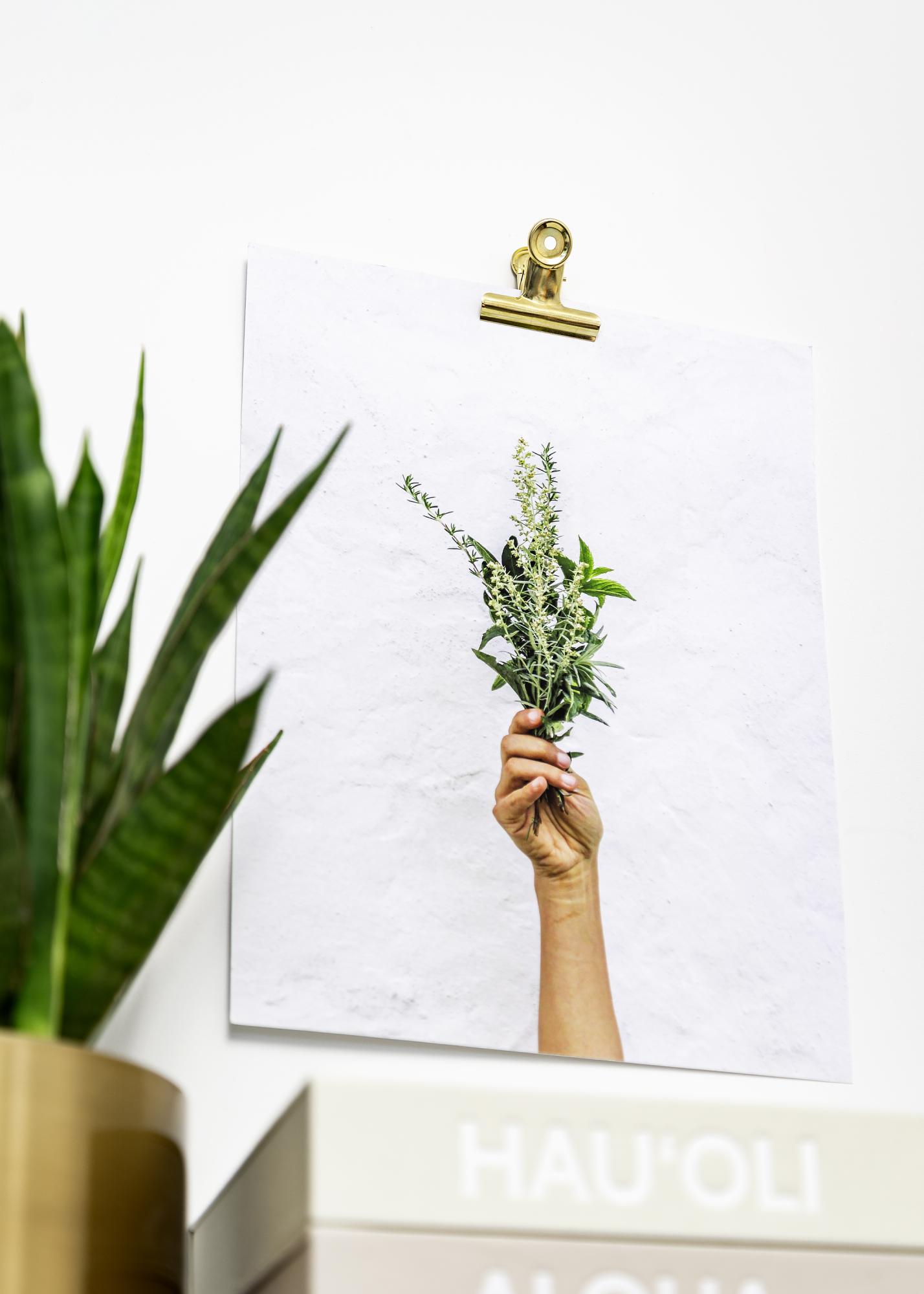 Kovinska sponka v elegantni in sijoči zlati izvedbi, ki vašim posterjem in printom omogoča trendovsko in minimalistično obešanje. Dizajn posterne sponke je stilno čist, luknje v okrogli vrhnji strani sponke pa omogočajo enostavno pritrditev na steno z majhnim žebljičkom ali vijakom. Odpiranje sponke ima močan oprijem, kar vam omogoča, da obesite tudi najtanjši papir, hkrati pa je fleksibilna in omogoča montažo motivov v različni debelini. Če imate velik poster, ki ga želite obesiti, uporabite dve kovinski sponki za najboljši rezultat.