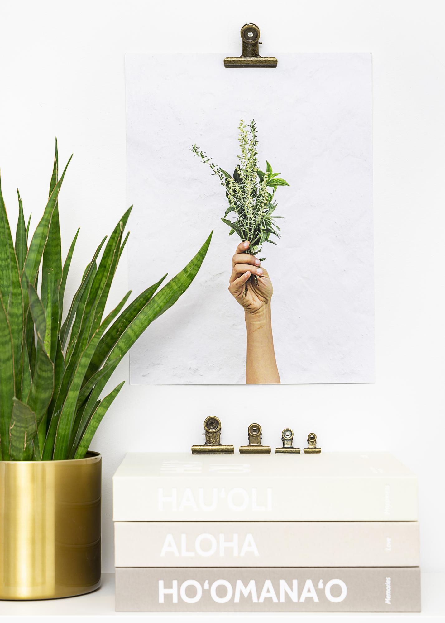 Ta elegantna kovinska sponka vam ponuja preprost in sodoben način za obešanje posterjev in tiskov na steno, medtem ko vas ljubka obrabljena bronasta barva lahko pritegne tudi, če imate radi dekorativne elemente v rustikalnem slogu. Odprtje sponke ima čvrst, a prilagodljiv oprijem, ki omogoča pritrditev tako super tankih papirjev kot posterjev z nekoliko večjo debelino. Če imate poster v nekoliko večjem formatu, ki ga želite obesiti, lahko uporabite dve kovinski sponki. Montaža na vašo steno je enostavna zahvaljujoč luknjam v elegantno zaokroženi vrhnji del sponke za posterje.