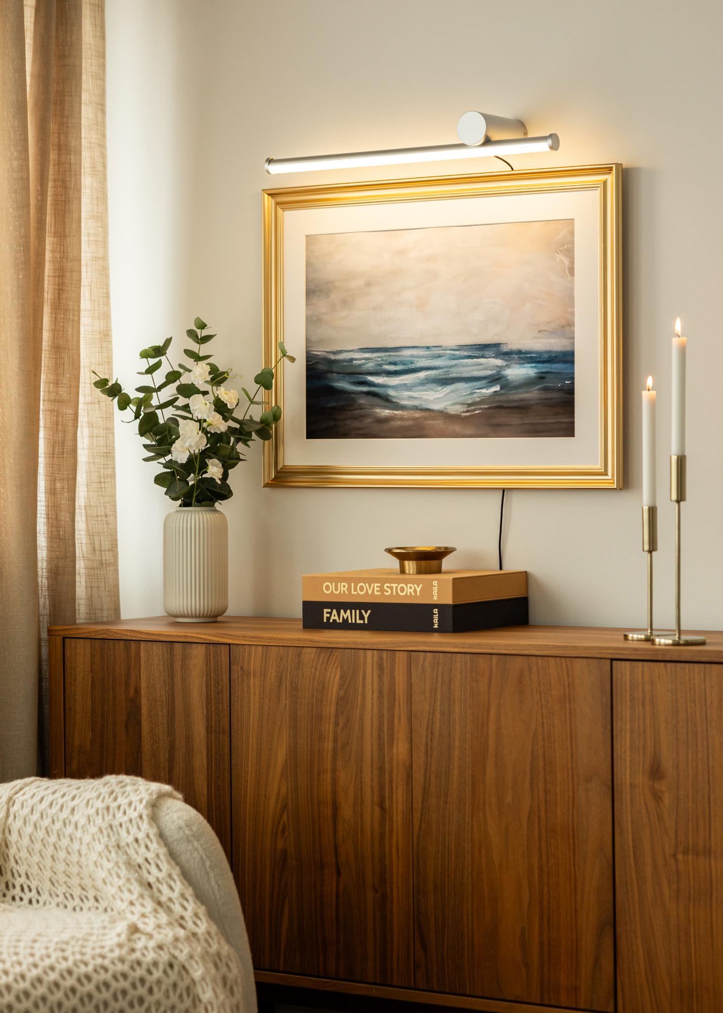 Svetilka je opremljena z LED-žarnico, ki oddaja toplo belo svetlobo pri 3000K. Ta svetloba je prijetna in ustvarja mehko ter vabljivo atmosfero v prostoru, ne da bi bila premočna. Svetilnost je 780 lumnov, kar zagotavlja dovolj svetlobe za poudarjanje podrobnosti vaših umetniških del, ne da bi postala premočna. Svetloba se enakomerno razporedi in omogoča, da je vsak del slike jasno viden.