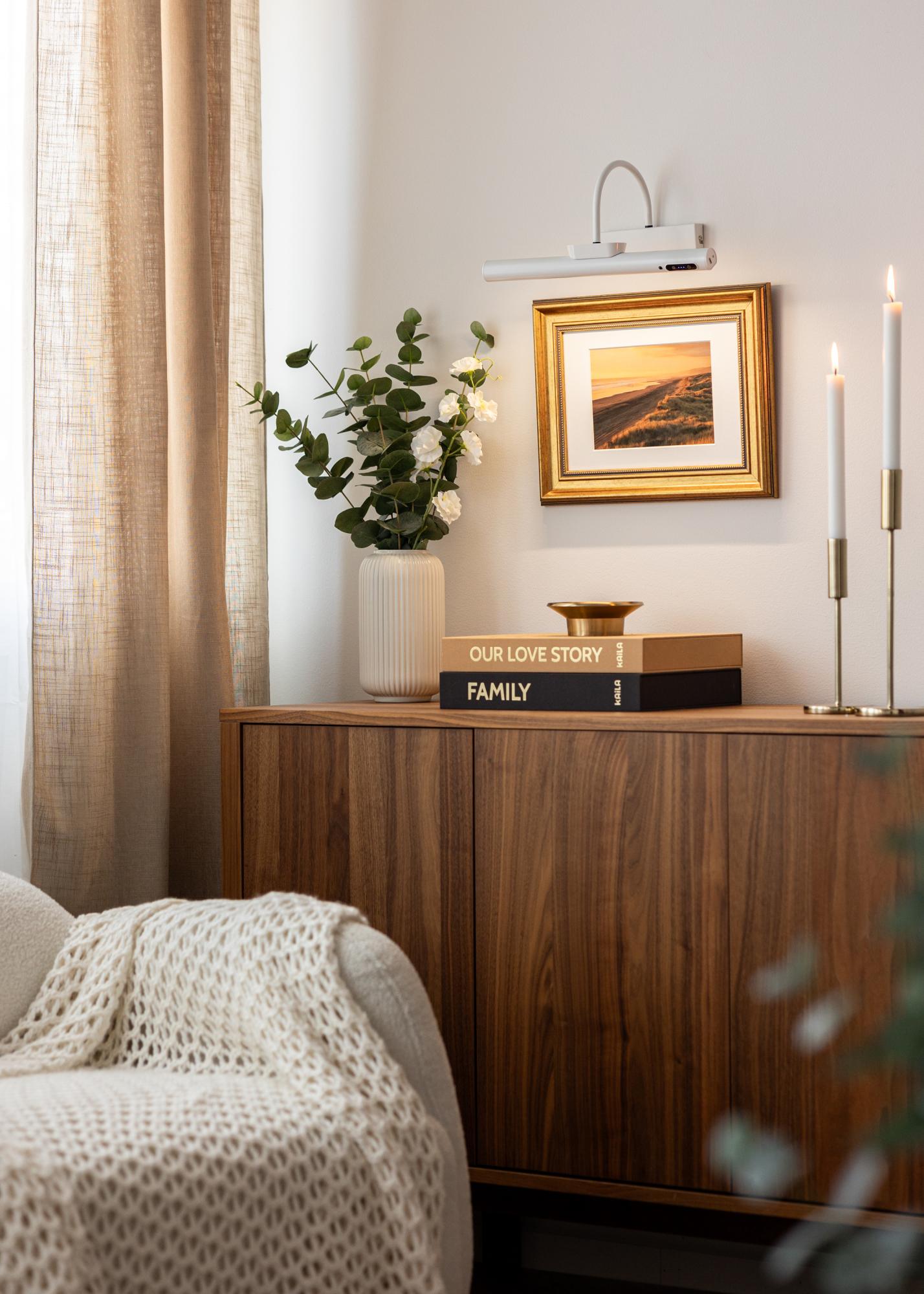 Bela površinska obdelava te svetilke za slike omogoča, da se prilega večini notranjih prostorov, in z baterijsko funkcijo je odlična izbira za tiste, ki želite svobodo postavitve svetilke kamor koli, ne da bi morali skrbeti za električne vtičnice. Enostavna za montažo in praktična za uporabo je to idealna rešitev za osvetlitev vaših najljubših umetnin.