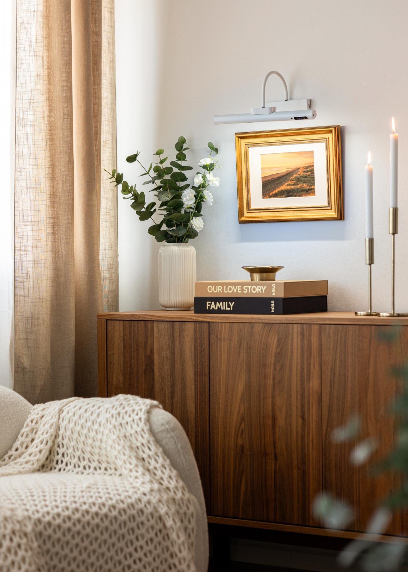 Z globino 14 cm in dolžino 35 cm je kompaktna in enostavna za namestitev, brez vizualne prevlade. Lahko osvetli umetniška dela s širino do 60 cm in zagotavlja enakomerno porazdelitev svetlobe. Svetlost se lahko prilagaja med 262 in 300 lumnov, kar zagotavlja uravnoteženo osvetlitev, ki poudarja podrobnosti umetnine, ne da bi bila premočna.