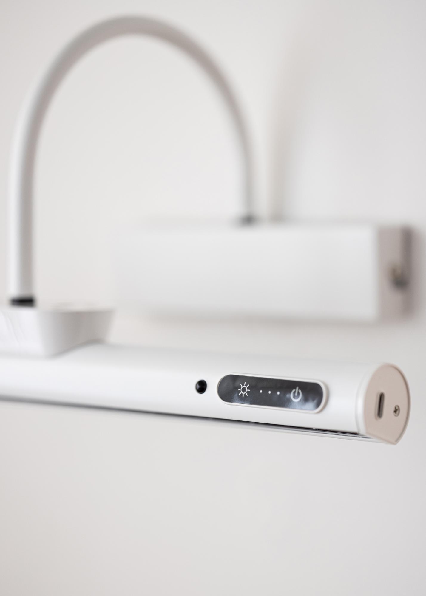 Ta baterijska svetilka za slike v beli izvedbi je praktična in elegantna. Z možnostjo, da se izognemo vidnim kablom, jo lahko namestite točno tam, kjer je potrebna za najboljši možni poudarek vaših umetnin. Svetilka ima LED svetlobni vir, ki nudi prijetno svetlobo in jo je mogoče prilagoditi v treh različnih barvnih temperaturah (3000K, 4000K, 6000K), odvisno od tega, kaj najbolj ustreza vaši umetnini in okolju.