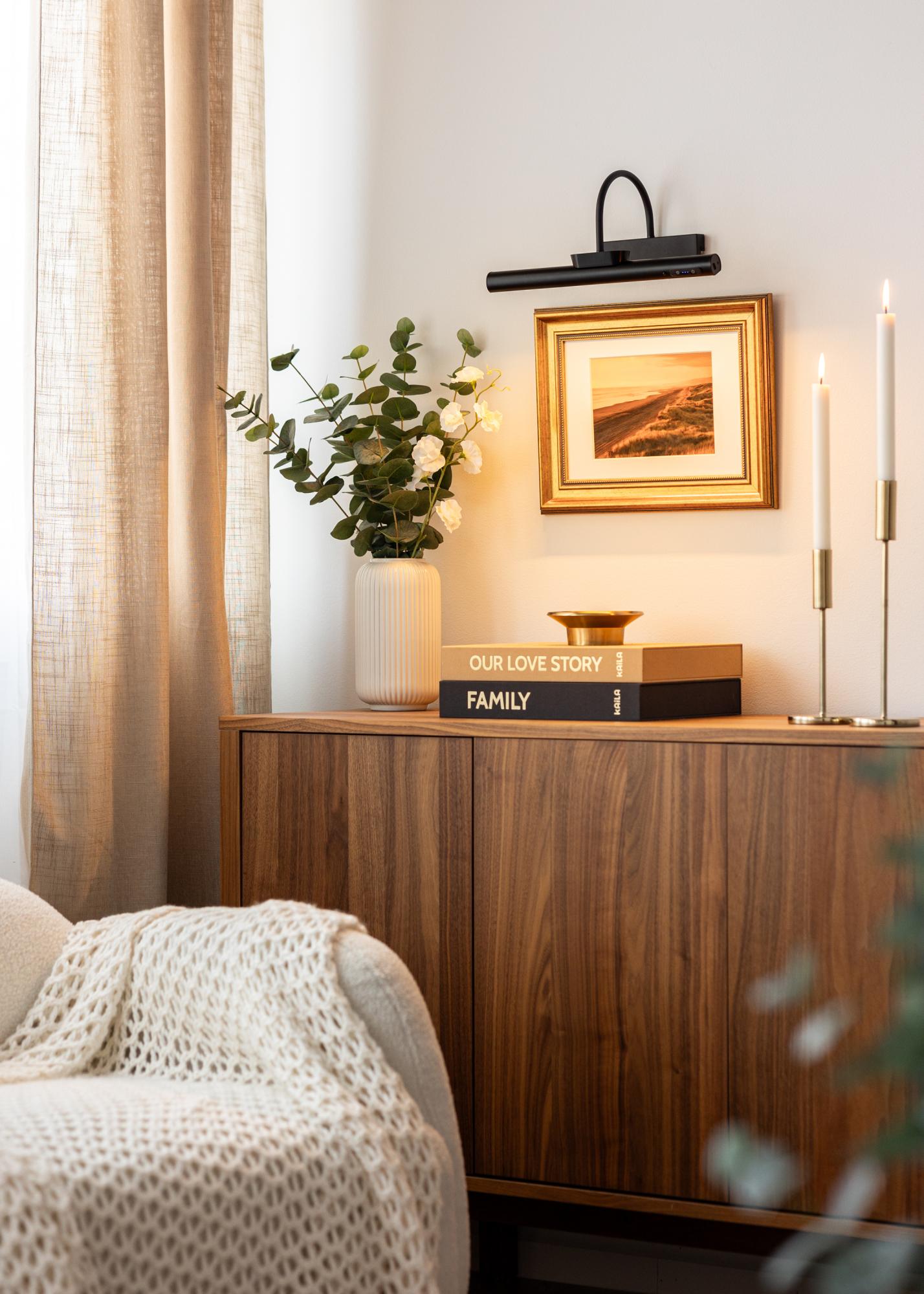 Ta svetilka na baterije vam omogoča osvetlitev vaših umetniških del brez potrebe po kablih, kar pomeni, da jo lahko postavite kjerkoli na steno. Z elegantno in moderno zasnovo v črni barvi svetilka ujame mnoge različne tipe notranjosti, in s svojo kompaktno globino 14 cm zavzame minimalno prostora, hkrati pa osvetli umetniško delo širine do 60 cm.