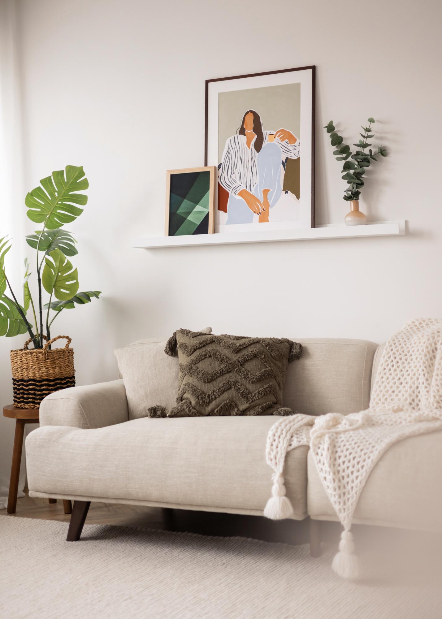 Z uporabno polico za slike lahko enostavno in elegantno razstavite in spreminjate svoje slike! Ta elegantna polica za slike je narejena iz MDF in je pobarvana na belo z lepo, polsijajno površino. Dizajn je eleganten z enostavnimi, ravnimi linijami in brezčasnim minimalističnim občutkom. Na sredini police poteka izrezan utor, ki podpira vaše slike in jim daje popoln kot, ko se naslanjajo na steno. Polica za slike ima tudi predvrtane luknje in v paketu so priloženi primerni vijaki in čepi, da je vse skupaj še nekoliko enostavnejše!
