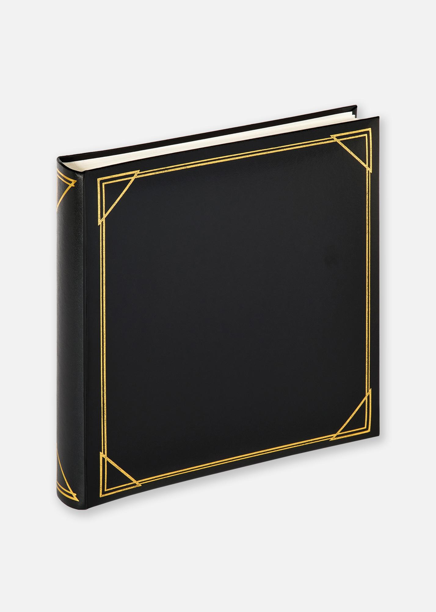 Zberite svoje najboljše slike in druge majhne papirne spomine v elegantnem in preprostem albumu! V tem črnem albumu je 50 belih strani, na katerih lahko ustvarite osebne kolaže. Tanke pergamentne liste ščitijo vaše slike v albumu. Ovitek je izdelan iz luksuznega umetnega usnja in ima dekorativne zlate odtise v obliki linij in trikotnikov.