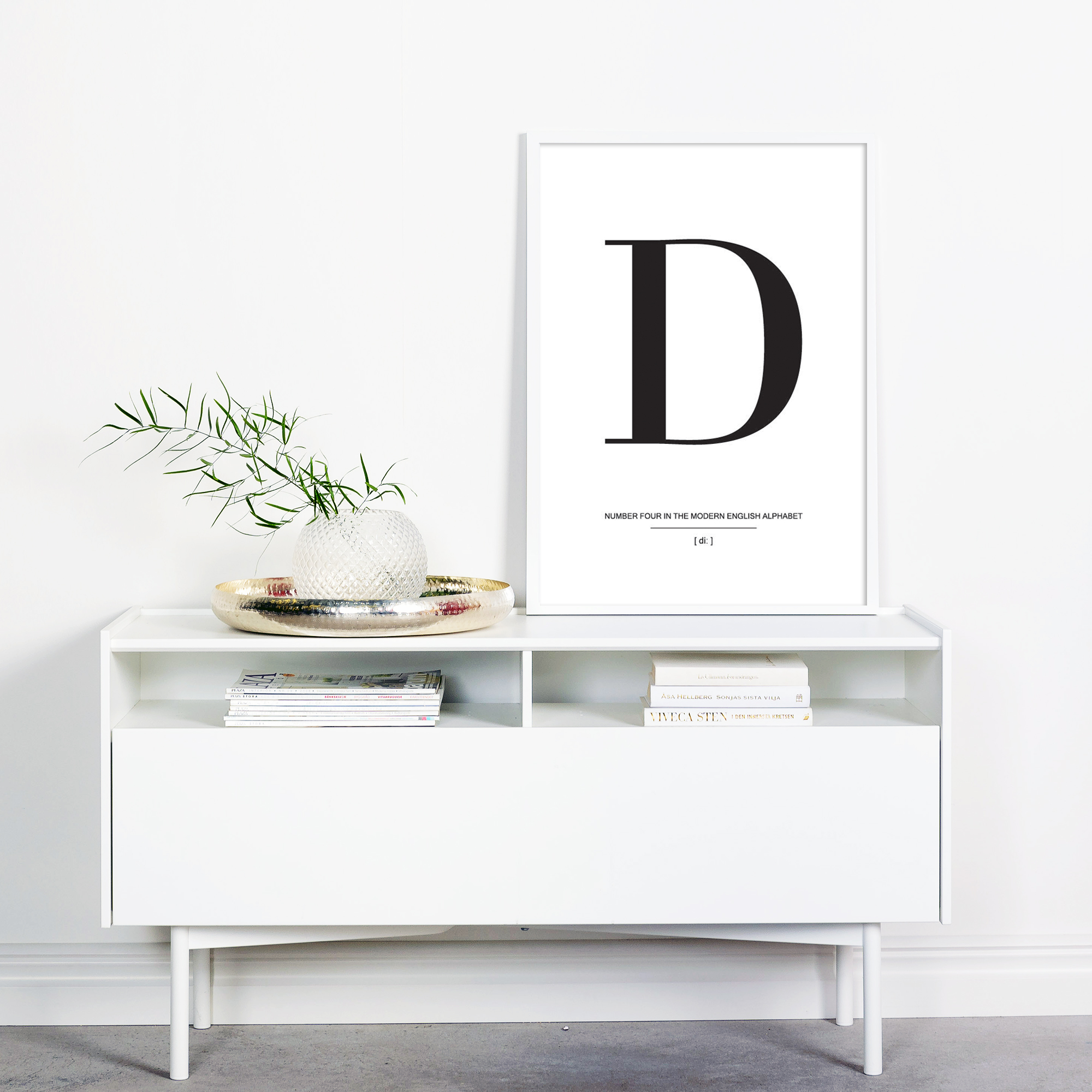 V preprostosti je lepota, kar resnično dokazuje ta eleganten plakat s črko D v črni barvi na beli podlagi. Plakat ima elegantno tipografijo in ga je treba dopolniti z drugimi plakati s črkami iz iste serije, da ustvarite trendovsko in lepo galerijsko steno. Izberite svoje najljubše plakate s črkami in izberite med našo veliko izbiro kakovostnih okvirjev, nato pa pustite domišljiji prosto pot na stenah doma.