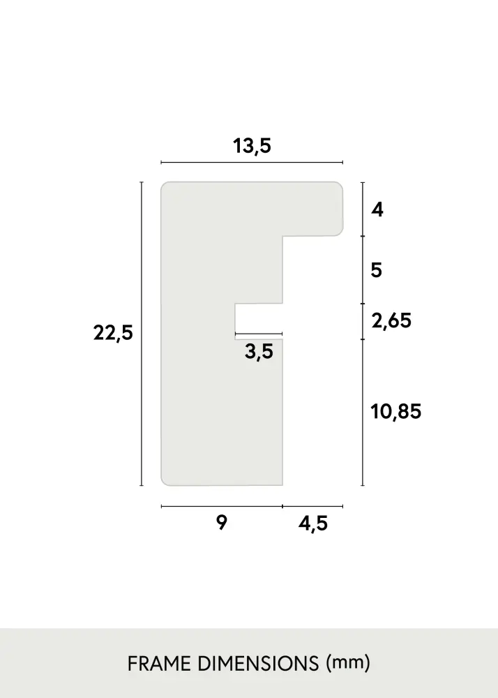 Okvir za fotografije je izdelan iz trajnostnega borovega lesa in ima robni trak, ki meri 13,5 mm v širino in globino 22,5 mm. To daje okviru stabilen in robusten občutek, hkrati pa ohranja eleganten profil. Opremljen je z kovinskimi obešalniki na zadnji strani, kar omogoča enostavno obešanje tako vodoravno kot navpično, odvisno od tega, kaj najbolj ustreza vašemu motivu.
