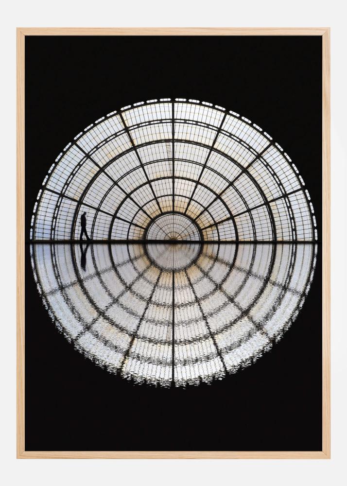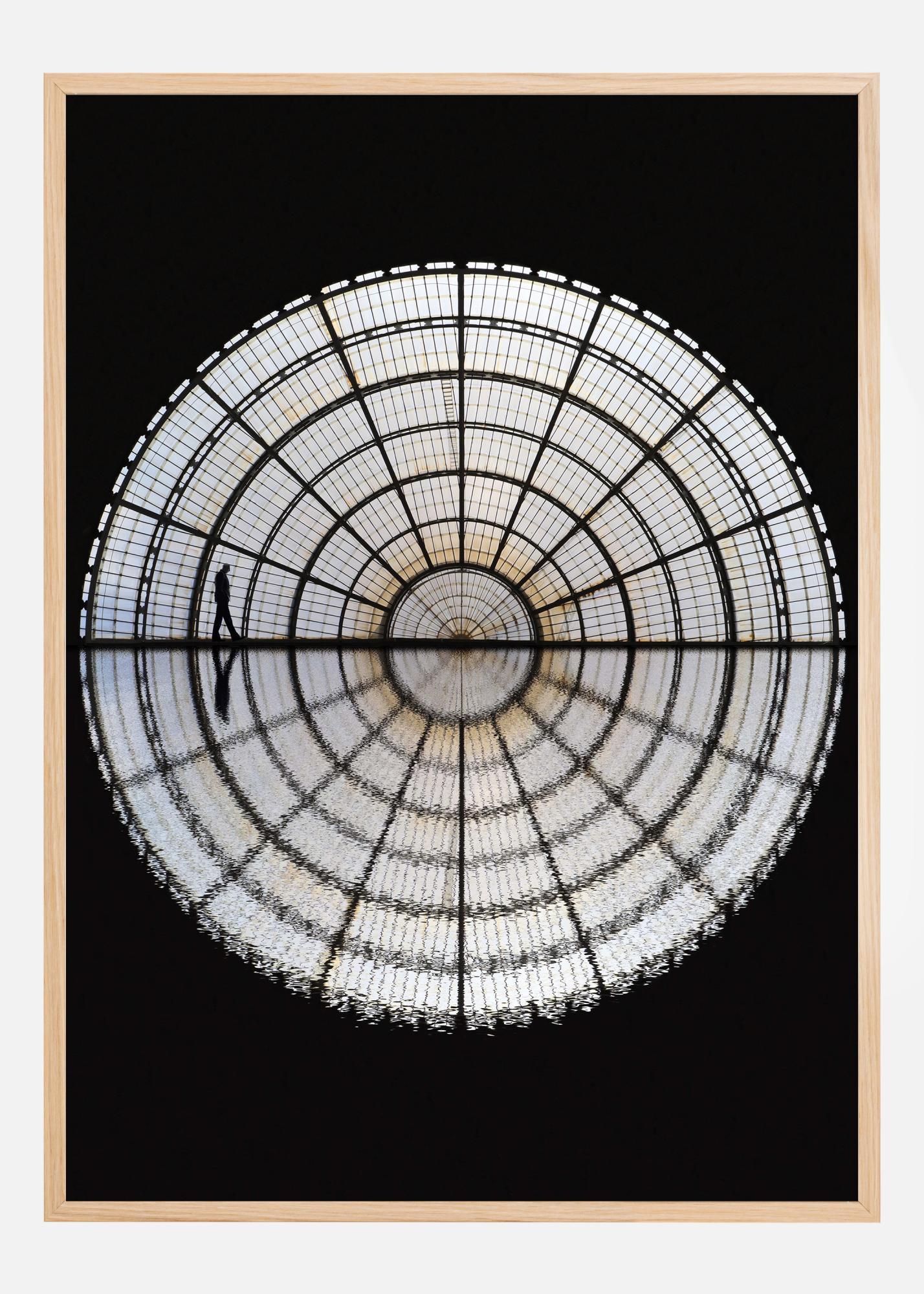 Ta umetniški poster z naslovom "Polnočni hodec" ujame osamljeno figuro, ki hodi pod impresivno kupolo svetle mreže, kar ustvarja občutek veličine in osamljenosti. Vizualni kontrast med temno nočjo in svetlečo mrežo oživlja motiv, in gledalec lahko začuti tihi mir osamljenega sprehoda.